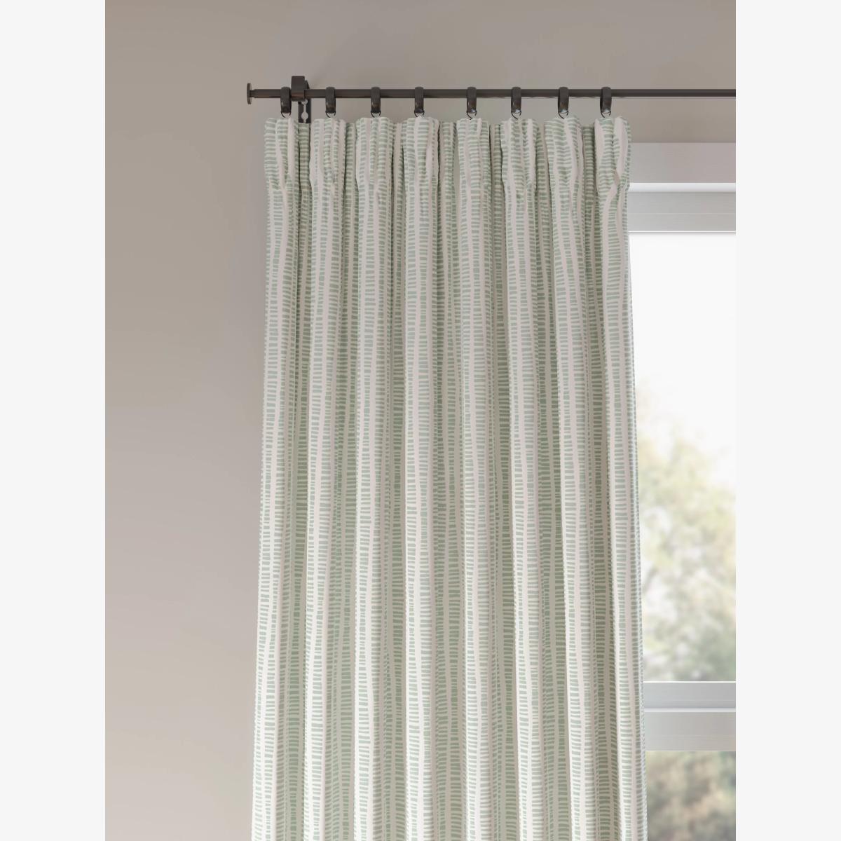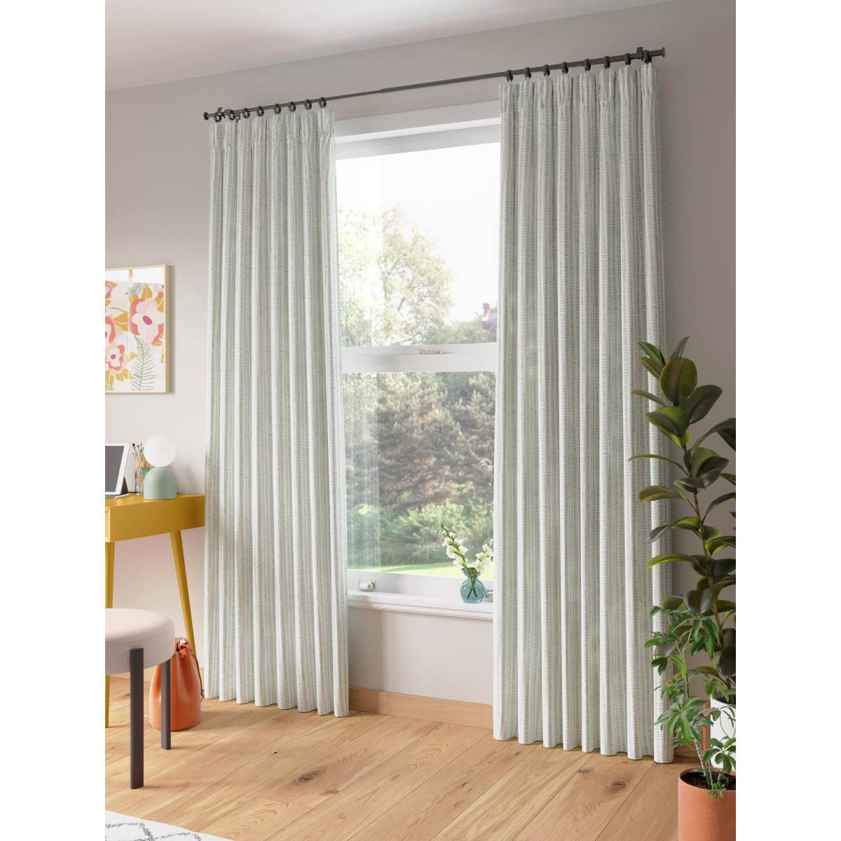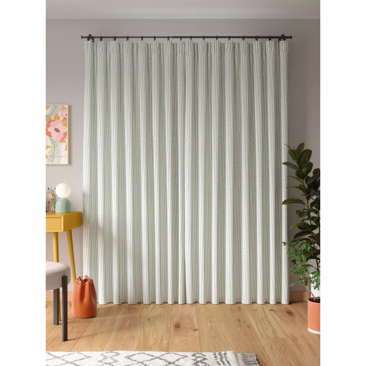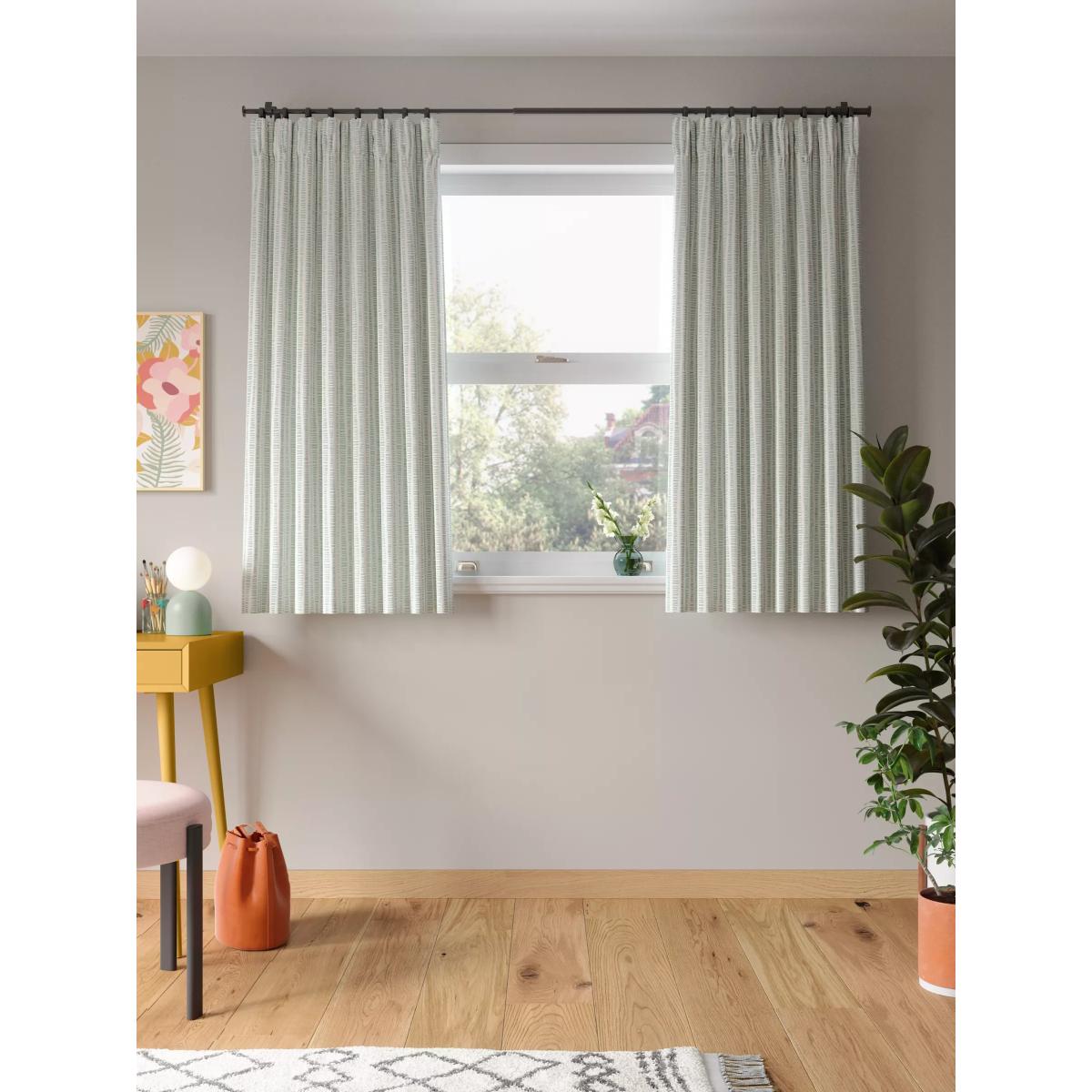 Bring contemporary style into your home with our ANYDAY Mesa curtains. They have a pencil pleat heading which creates small, neat folds at the top and a dimout coating to filter reduce outside light. Warm in winter, cool in summer As the dimout lining on these curtains blocks out sunlight they help keep your room cool as well as dark. This lining also adds an extra layer of insulation to the curtains, giving them the added benefit of being thermal. They protect against both heat loss and heat gain, regulating the temperature of your room so you’re kept warm in winter and cool in summer. Choosing the right size These curtains can be hung with a pole or track using curtain hooks (not included). There are three hook positions on the heading, allowing you to choose how your curtains sit against the track or pole. For example, if you're using a track you may want to use the middle or lower row of hooks to cover the track, whereas if you're using a pole you may want to use the top row of hooks so the curtains hang below the rings. The specified drop is taken from the top row of hook pockets to the bottom edge of the curtain. The width stated indicates the size of one curtain panel when laid completely flat. This pack contains two panels, and the track/pole length we've recommended allows for the two panels to be gathered when the curtains are drawn. For a fuller look, increase the curtain width. One pair of 117cm width curtains will fit a curtain track/pole size 117-167cm One pair of 167cm width curtains will fit a curtain track/pole size 133-167cm One pair of 228cm width curtains will fit a curtain track/pole size 182-228cm Better Cotton By choosing our cotton products, you’re supporting our investment in Better Cotton’s mission to help cotton communities survive and thrive while protecting and restoring the environment. Better Cotton Farmers are farmers who care for the environment and respect workers’ rights and wellbeing. This product is sourced via a system of mass balance and therefore may not contain Better Cotton. bettercotton.org/massbalance Worth knowing... We package our curtains in recycled materials to keep them protected whilst they make their way to you. This means that when they arrive there could be some creases in them. We recommend you hang them for a few days to allow them to flatten and for the creases to fall out. If after this period your curtains still show signs of being folded then follow the ironing instructions on the back of the packaging. Be aware that each style of curtain has different ironing instructions, including heat limitations according to the fabric, so do make sure you follow the guidance provided to get the best results. Do you need a curtain pole and accessories? Shop them here. With great prices and great design, our new brand offers style and quality for modern living today. Whatever you need, there's joy to be found in ANYDAY.