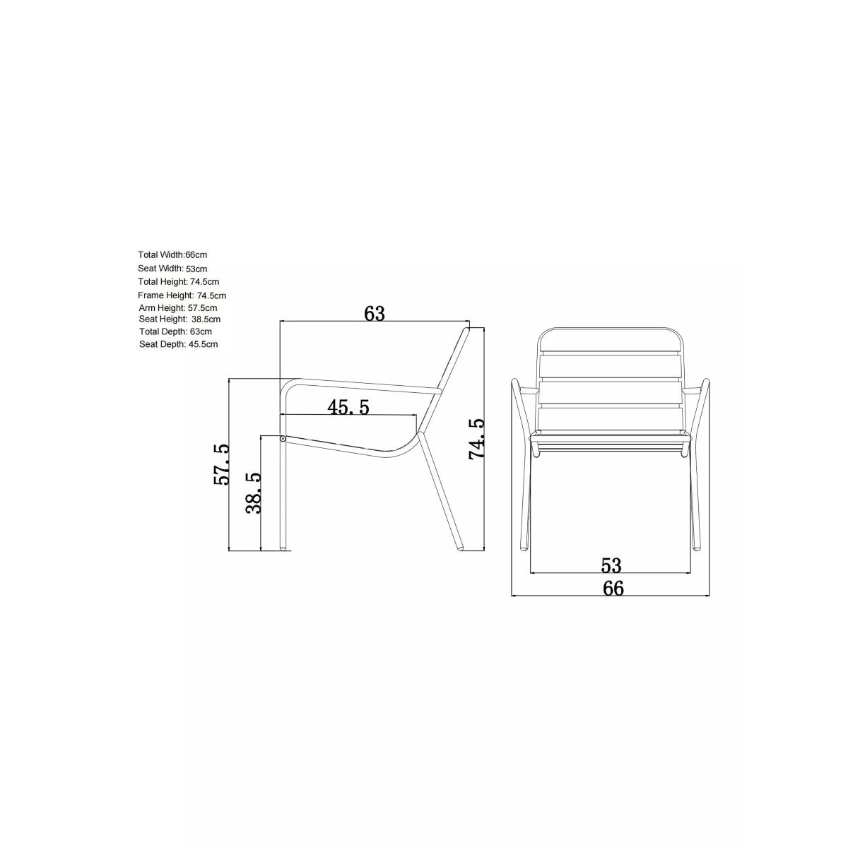 Contemporary lounge chair made of sturdy steel with a durable and weather-resistant powder-coated finish. Withstands a weight of up to 25 stone (160kg) per chair, exceeding the industry standard. Arrives fully assembled, ready for immediate use. Easy to maintain, all it needs is a quick wipe down with warm soapy water to keep it clean. Team it with other metal garden furniture in this range. Key features: Single garden lounge chair Weather-resistant powder-coated steel Robust design withstands up to 25 stone (160kg) Fully assembled Stackable for easy storage Easy to clean and maintain Garden furniture care: To keep your outdoor furniture in the best condition, store it in a cool, dry, well-ventilated spot indoors over the winter. If it’s staying outside, use an outdoor furniture cover whenever the weather is wet or unseasonal. Make sure furniture is clean and dry before storing it away.