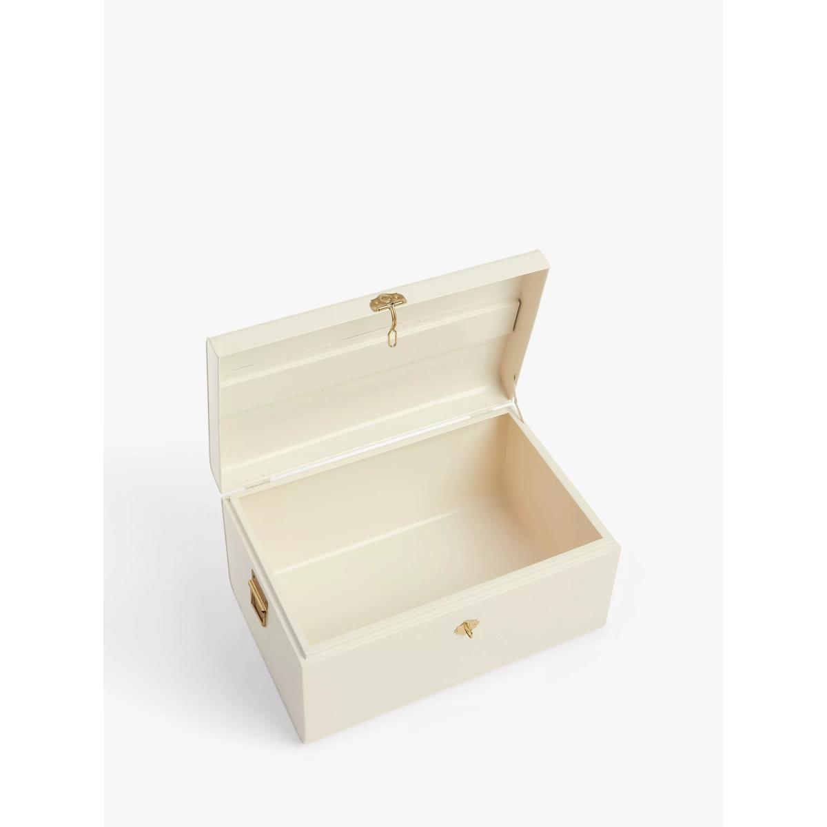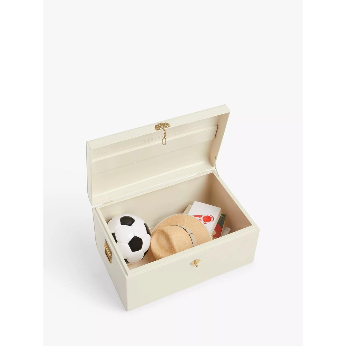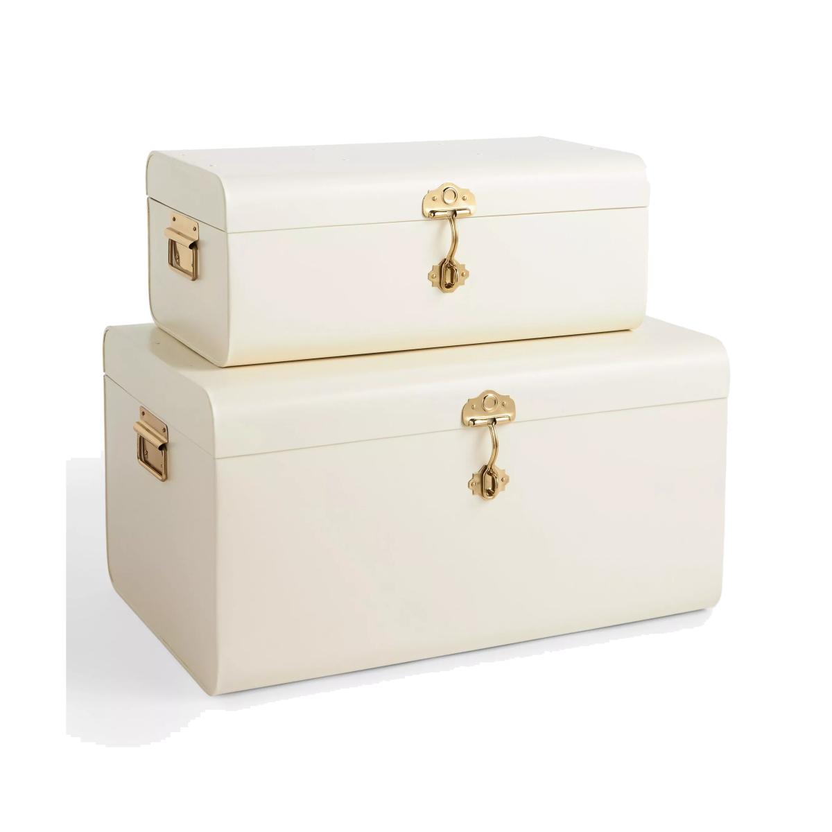 Keep all your treasures in these metal storage trunks. Handmade, they have a matt powder-coated finish with brass accent handles and hinge.