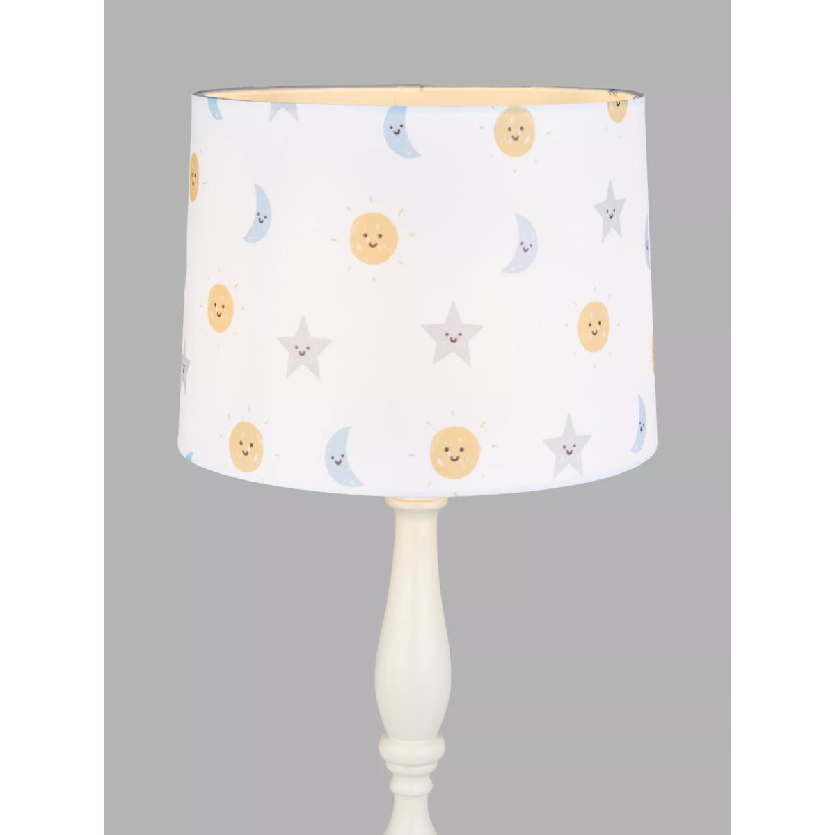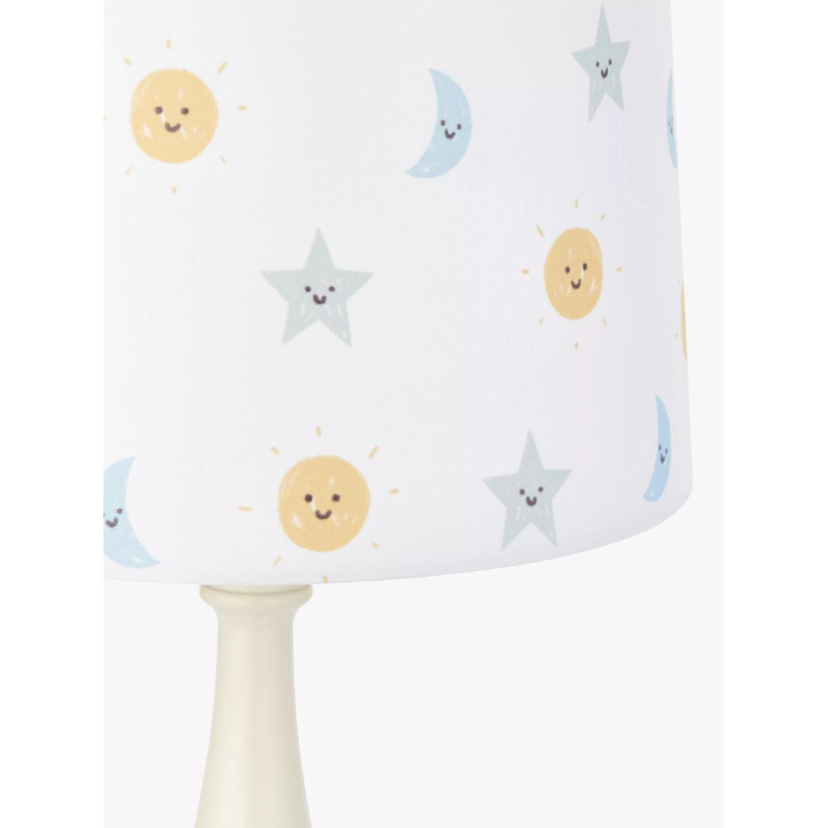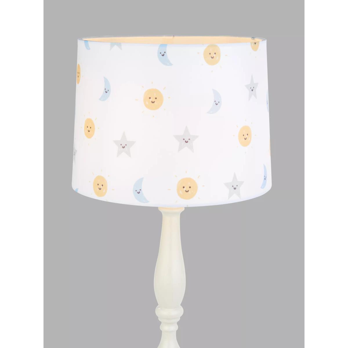 I love the John Lewis night and day lamp for its cheerful, gender-neutral design that suits a range of nursery interiors. Its gentle, pastel-coloured celestial print adds a calming touch without overwhelming the space. This lampshade works well in both contemporary and traditional child’s rooms, particularly when paired with soft furnishings in complementary hues. Practical styling tips include placing it as a central feature in the nursery for ambient lighting or matching it with similar themed accessories to create a cohesive look. Its size makes it versatile for fitting over bedside tables or larger light fixtures, making it a functional yet charming addition to any child's space.