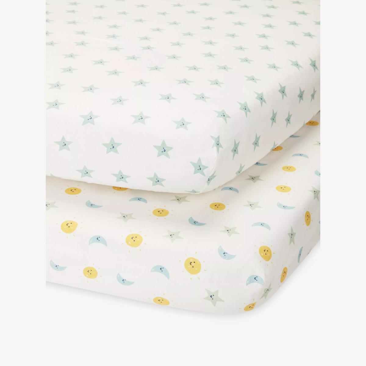 Invigorate your nursery with this two-pack of sheets from our ANYDAY collection. A key part of a good night's sleep, our fitted cot and cotbed sheets are made from soft and breathable cotton that is kind to delicate skin. The fitted design makes it easy to put on the mattress as well as keeping the sheet tight on the bed. This pack includes two sheets one with an allover star print and the other with a combination of suns, moons and stars. With great prices and great design, our new brand offers style and quality for modern living today. Whatever you need, there’s joy to be found in ANYDAY.