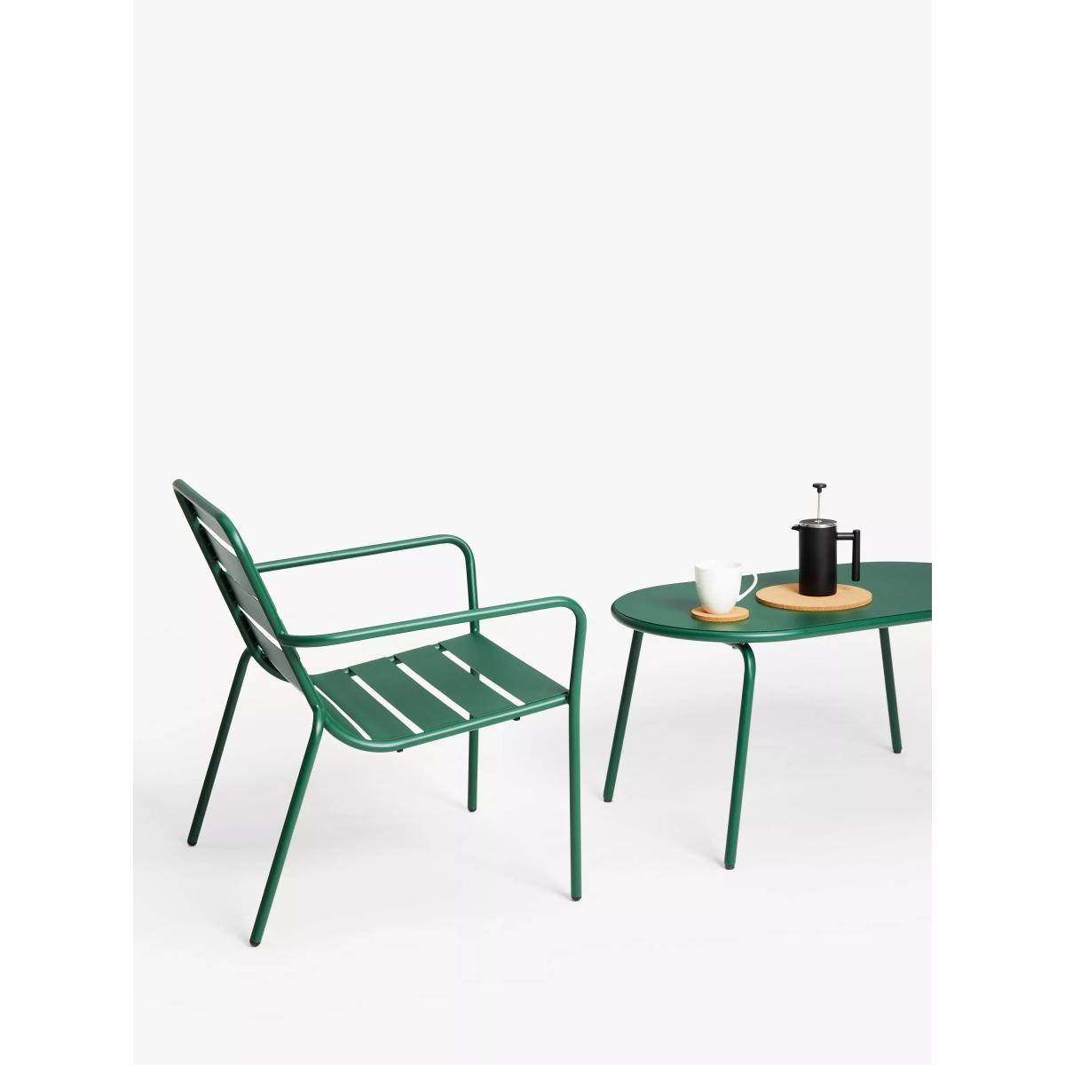 Contemporary oval coffee table made of sturdy steel with a durable and weather-resistant powder-coated finish. Easy to maintain, all it needs is a quick wipe down with warm soapy water to keep it clean. Team it with other metal garden furniture in this range. Key features: Oval garden coffee table Weather-resistant powder-coated steel Easy to clean and maintain Garden furniture care: To keep your outdoor furniture in the best condition, store it in a cool, dry, well-ventilated spot indoors over the winter. If it’s staying outside, use an outdoor furniture cover whenever the weather is wet or unseasonal. Make sure furniture is clean and dry before storing it away.