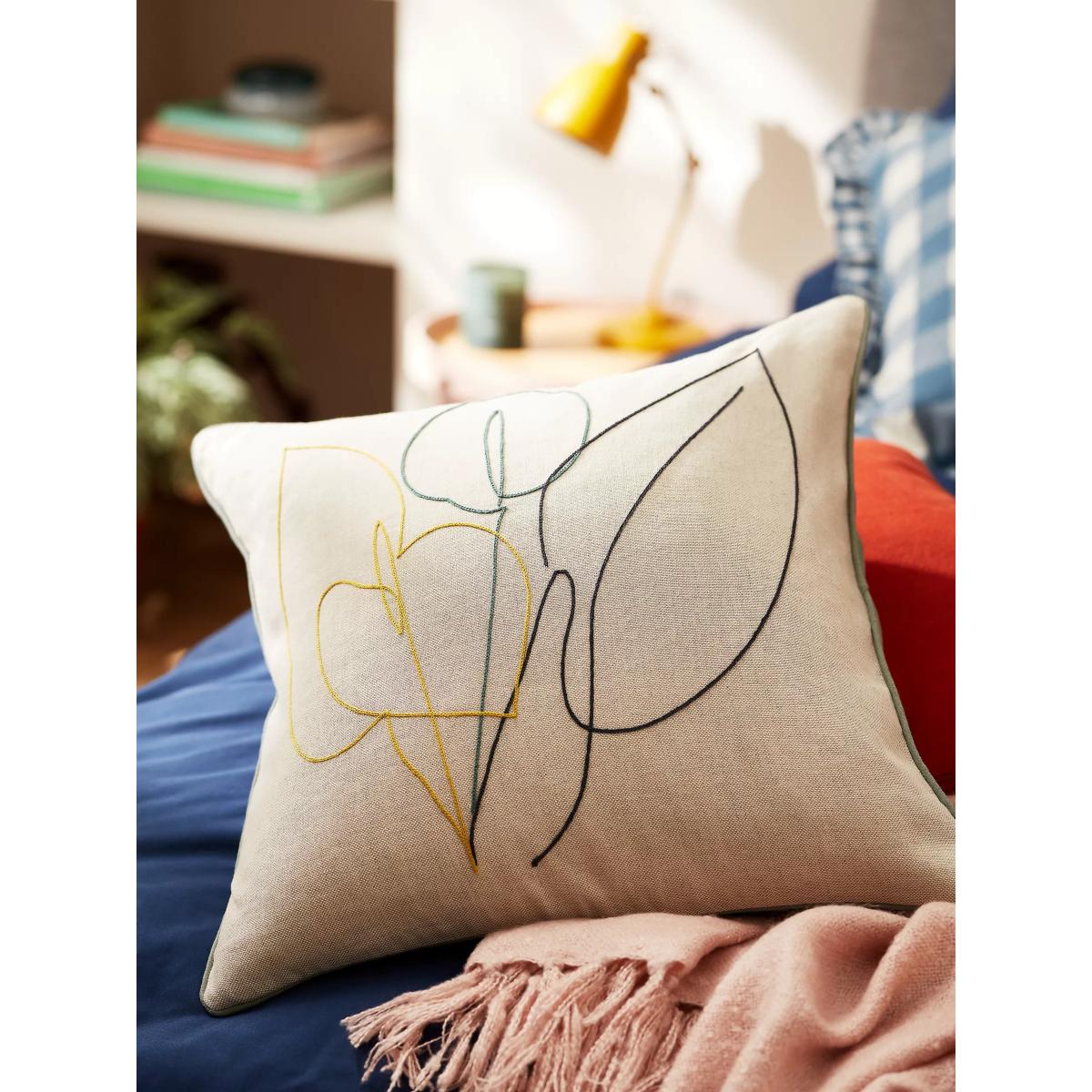 John Lewis ANYDAY Peace Lily Linen Blend Cushion, Greige
