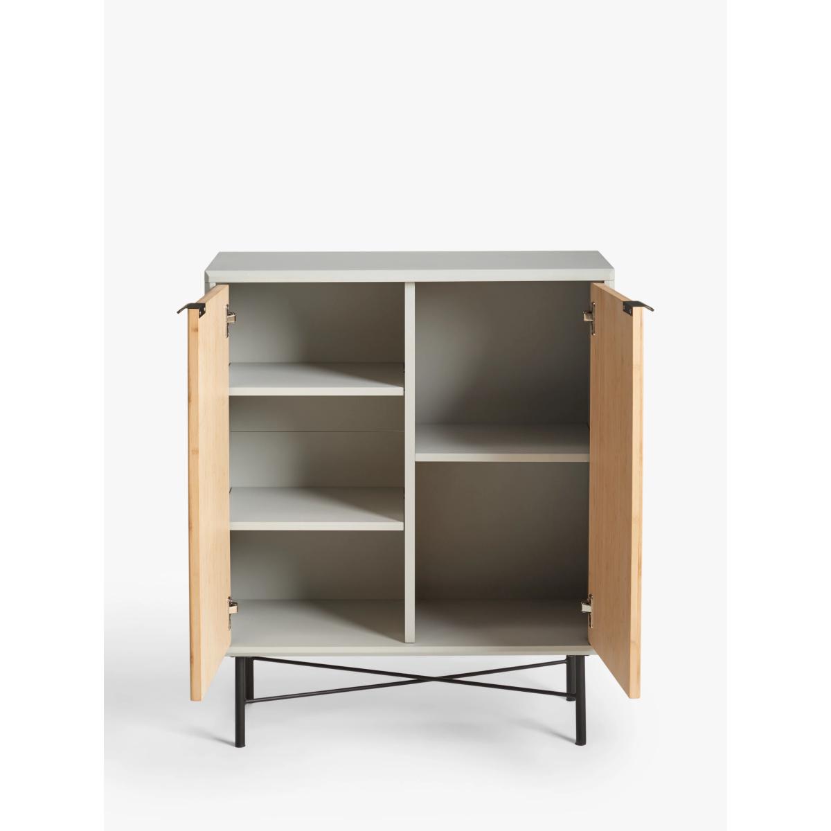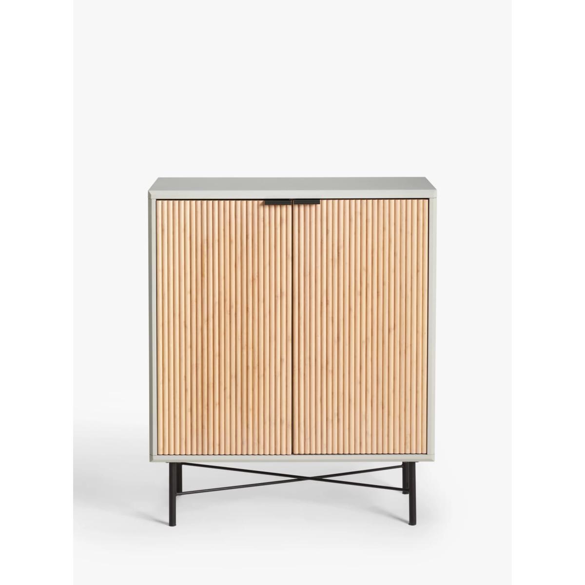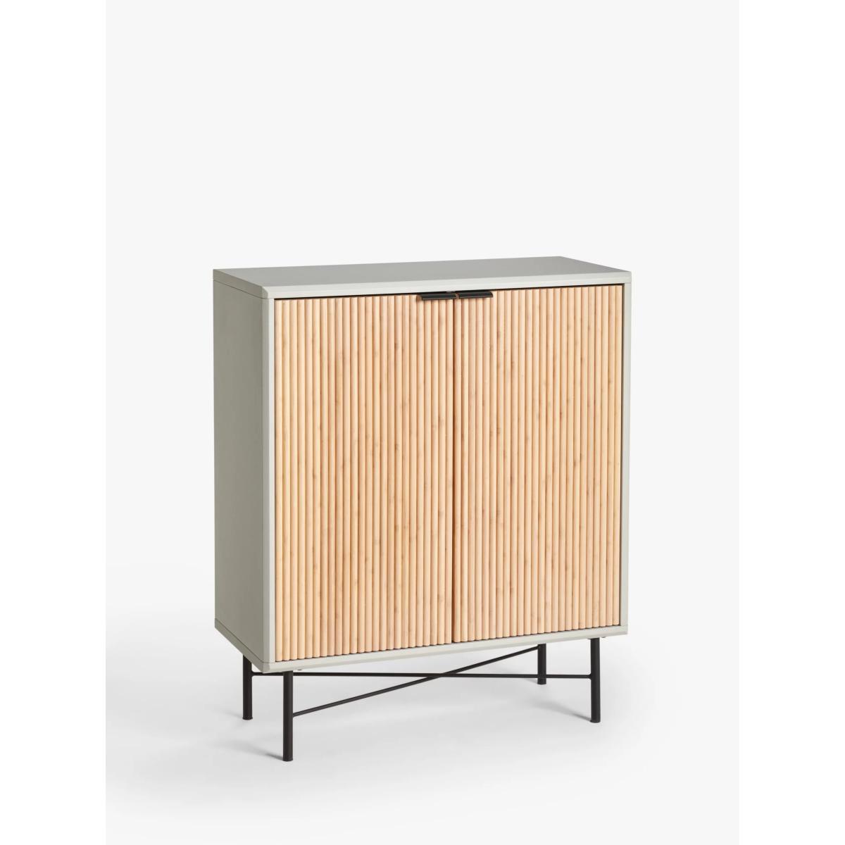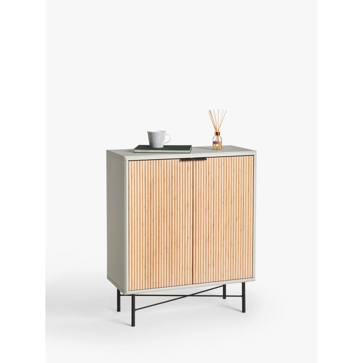 We've made this brilliant-value storage cabinet from a combination of painted MDF and natural bamboo, which we've used to create the ridge feature on the cupboard doors. There's plenty of storage space thanks to three adjustable shelves inside and the steel frame provides a minimalist, but reassuringly stable and robust base. Easy to assemble and available in neutral or bold painted finishes so you can add an accent of colour to your space. More about bamboo Bamboo is the world's fastest growing plant, so it's considered to be one of the most renewable and readily available raw materials in the world. It's incredibly durable and lightweight and can be re-harvested every 3-5 years, in comparison to certain hardwoods that can only be harvested every 50 years. Want to see it first? You may want to see and get a feel for the furniture in one of our shops before ordering. We'll be able to tell you where the range you'd like to view is on display. With great prices and great design, our new brand offers style and quality for modern living today. Whatever you need, there's joy to be found in ANYDAY.