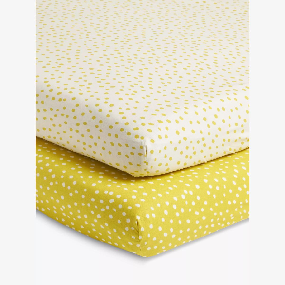 John Lewis ANYDAY Spots Cotton Baby Fitted Sheet, Pack of 2, Yellow