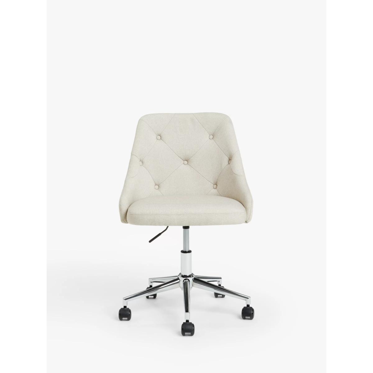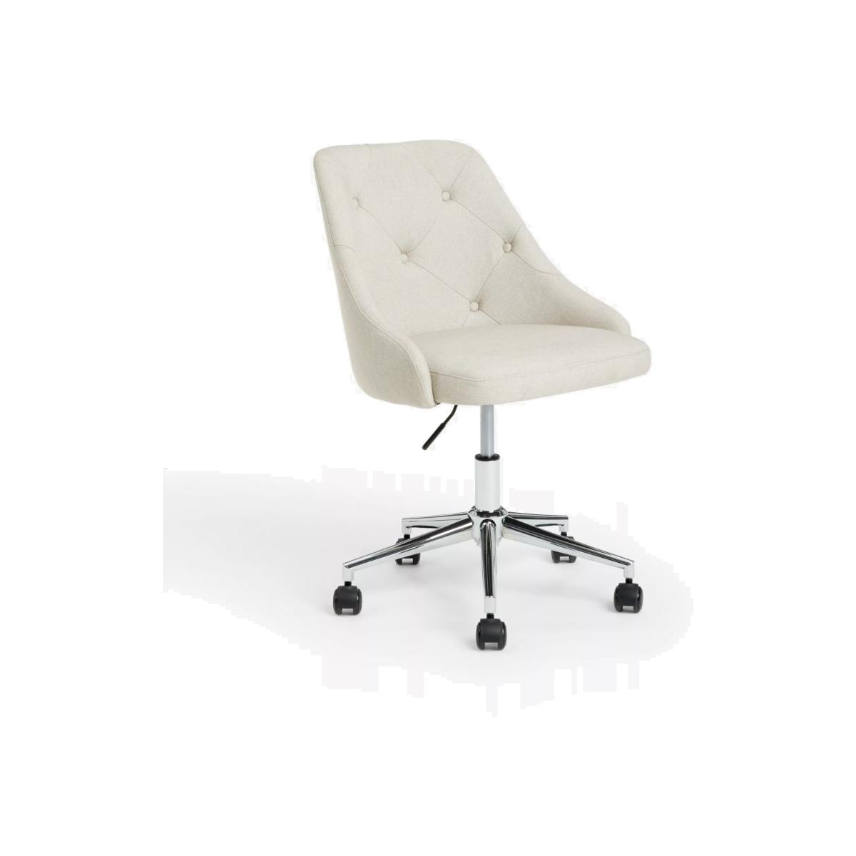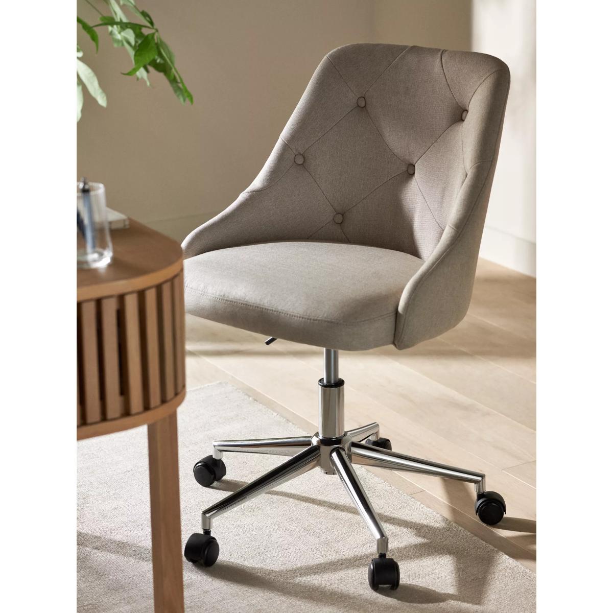 Mixing comfort and practicality, Tilly has all the functions of an office chair with a cream upholstered finish and button back to fit right in anywhere you choose to work, whether in the corner of your living room or an entirely separate space. Both swivelling and height adjustable, to minimise stresses and strains on your body, the scoop back makes it comfortable and supportive enough for a full day of work. Want to see it first? You may want to see and get a feel for the furniture in one of our shops before ordering. We'll be able to tell you where the range you'd like to view is on display. With great prices and great design, our new brand offers style and quality for modern living today. Whatever you need, there's joy to be found in ANYDAY.