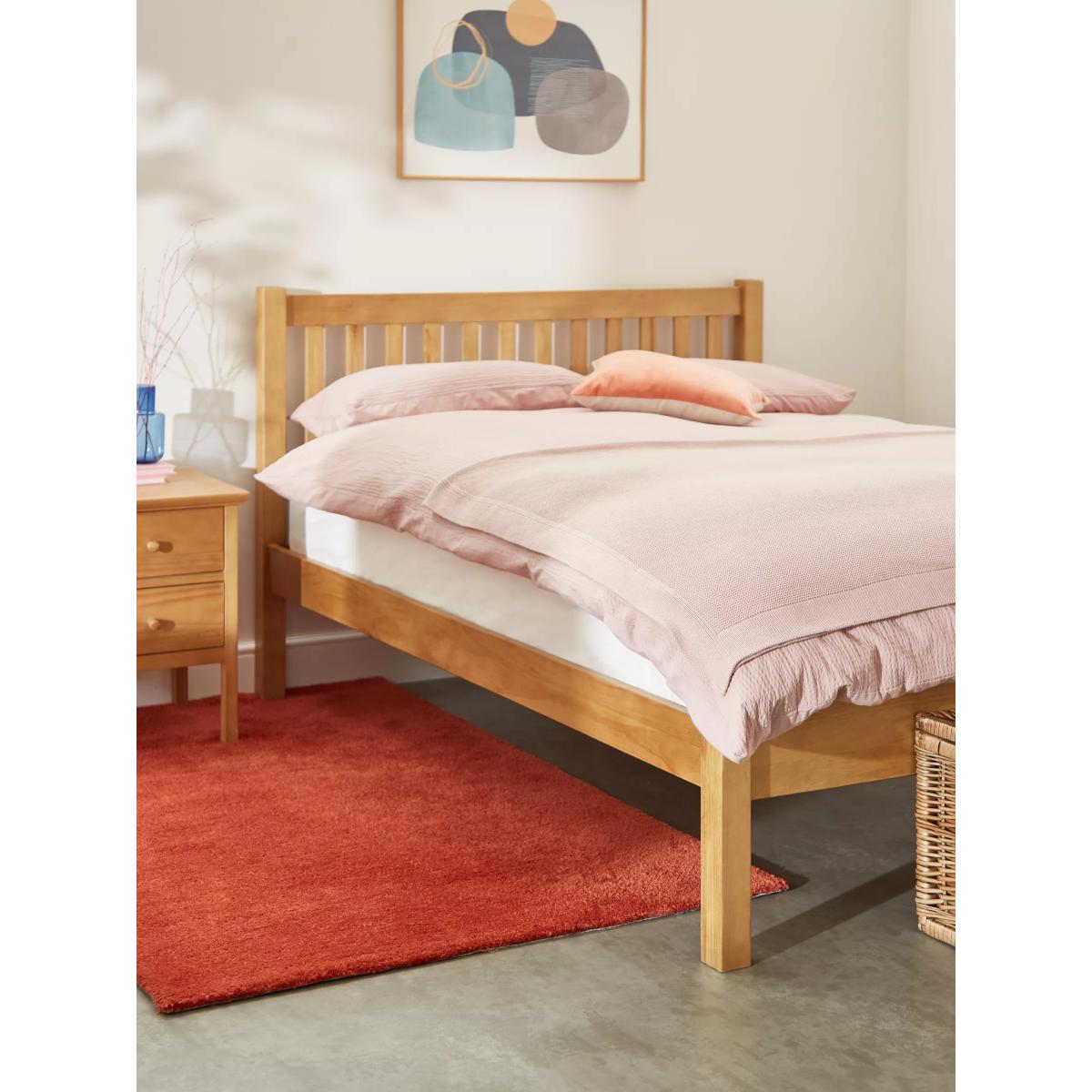 It's easy to assemble this bed frame, which we've made from hard-wearing pine wood. We like its simple, clean-lined design that features a slatted headboard, while solid slats provide a firmer base for your mattress. Available in a painted finish for a more modern look or a natural finish that highlights the authentic wood grains. Want to see it first? You may want to see and get a feel for the furniture in one of our shops before ordering. We'll be able to tell you where the range you'd like to view is on display. With great prices and great design, our new brand offers style and quality for modern living today. Whatever you need, there’s joy to be found in ANYDAY.