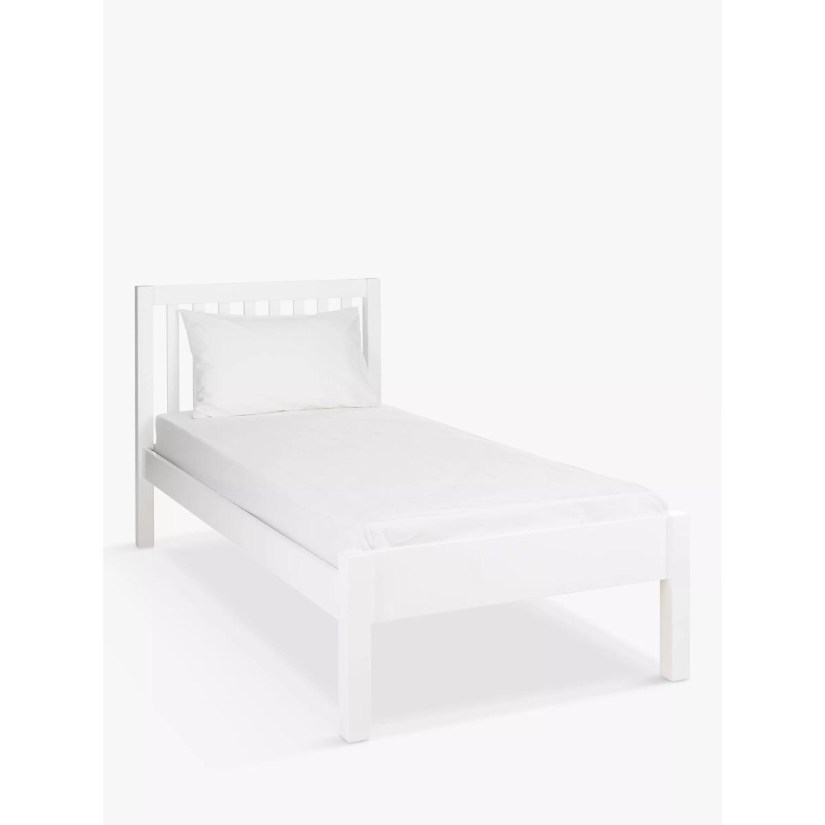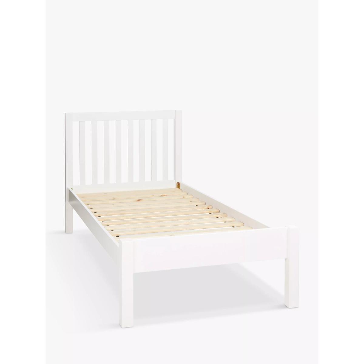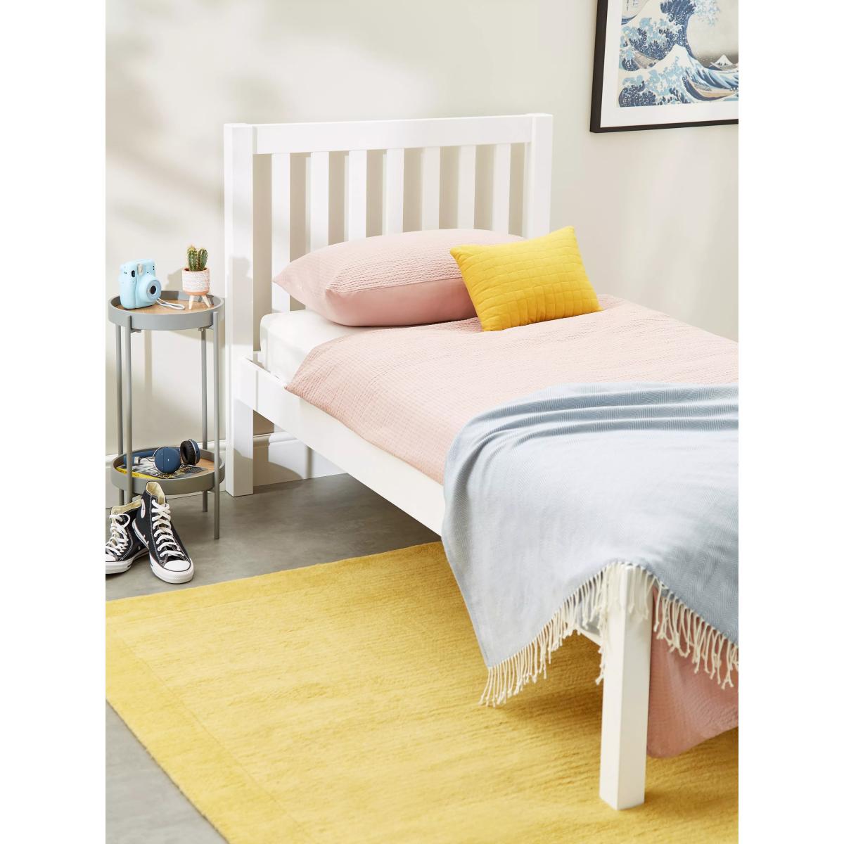 It's easy to assemble this bed frame, which we've made from hard-wearing pine wood. It has a simple, clean-lined design with a slatted headboard, and the solid slats in the base provide a firmer foundation for your mattress. It's available in a painted finish for a more modern look or a natural finish that highlights its authentic wood grains. Worth Knowing: Child Compliant bed frame This bed conforms to BS 8509:2008+A1:2011 (Childrens beds for domestic use. Safety requirements and test methods). We recommend it is used with a standard single mattress, L190 x W90cm. Not suitable for children under the age of 4 years. See me in-store It's a good idea to get a feel for new furniture before you make a purchase. With great prices and great design, our new brand offers style and quality for modern living today. Whatever you need, there’s joy to be found in ANYDAY.