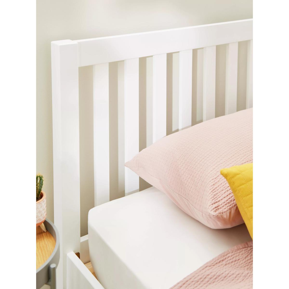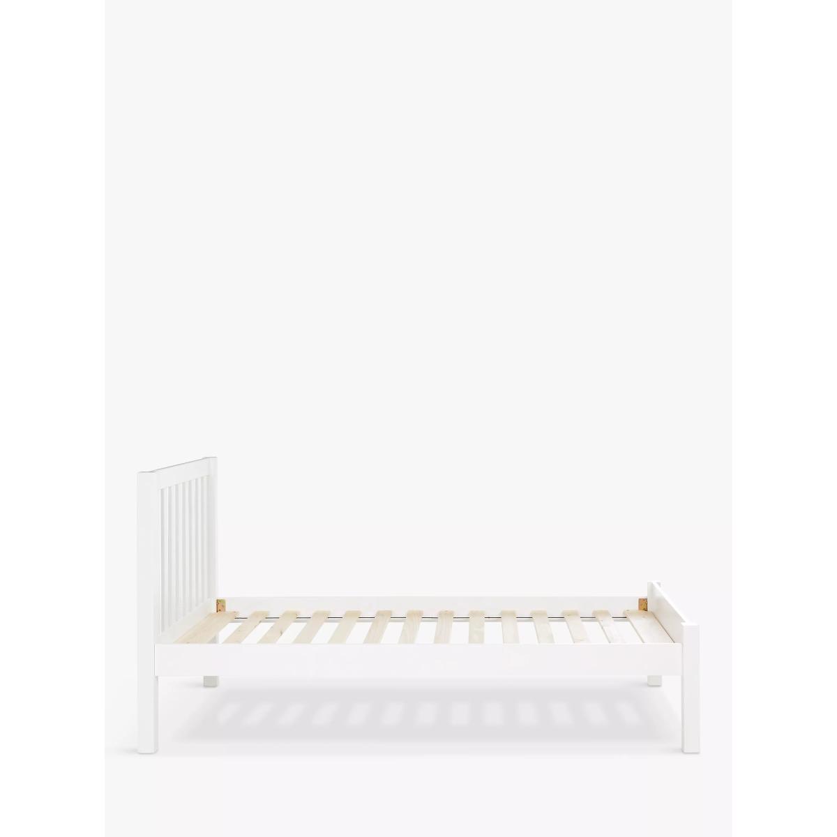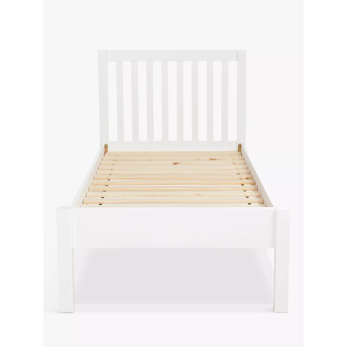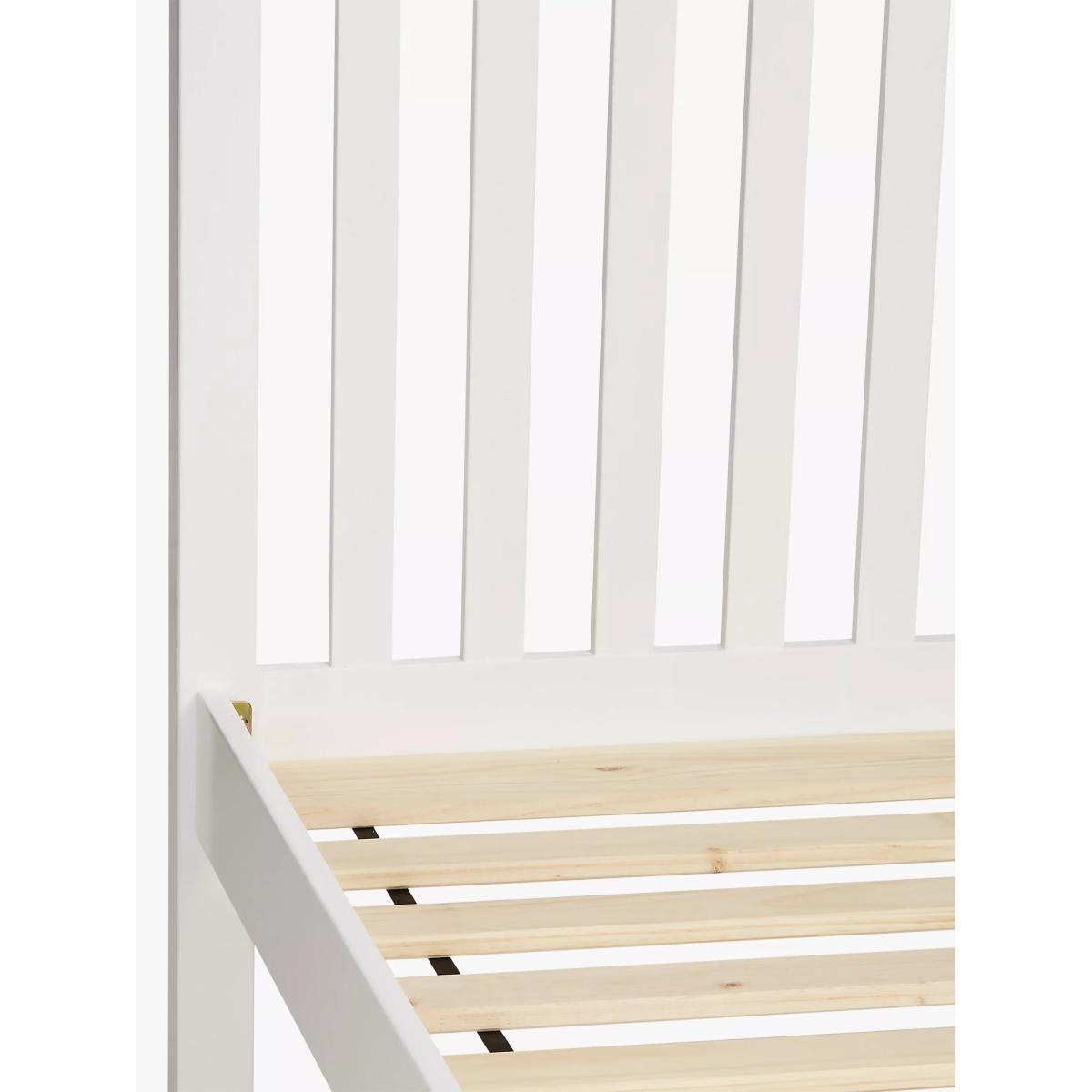 It's easy to assemble this bed frame, which we've made from hard-wearing pine wood. It has a simple, clean-lined design with a slatted headboard, and the solid slats in the base provide a firmer foundation for your mattress. It's available in a painted finish for a more modern look or a natural finish that highlights its authentic wood grains. Worth Knowing: Child Compliant bed frame This bed conforms to BS 8509:2008+A1:2011 (Childrens beds for domestic use. Safety requirements and test methods). We recommend it is used with a standard single mattress, L190 x W90cm. Not suitable for children under the age of 4 years. See me in-store It's a good idea to get a feel for new furniture before you make a purchase. With great prices and great design, our new brand offers style and quality for modern living today. Whatever you need, there’s joy to be found in ANYDAY.