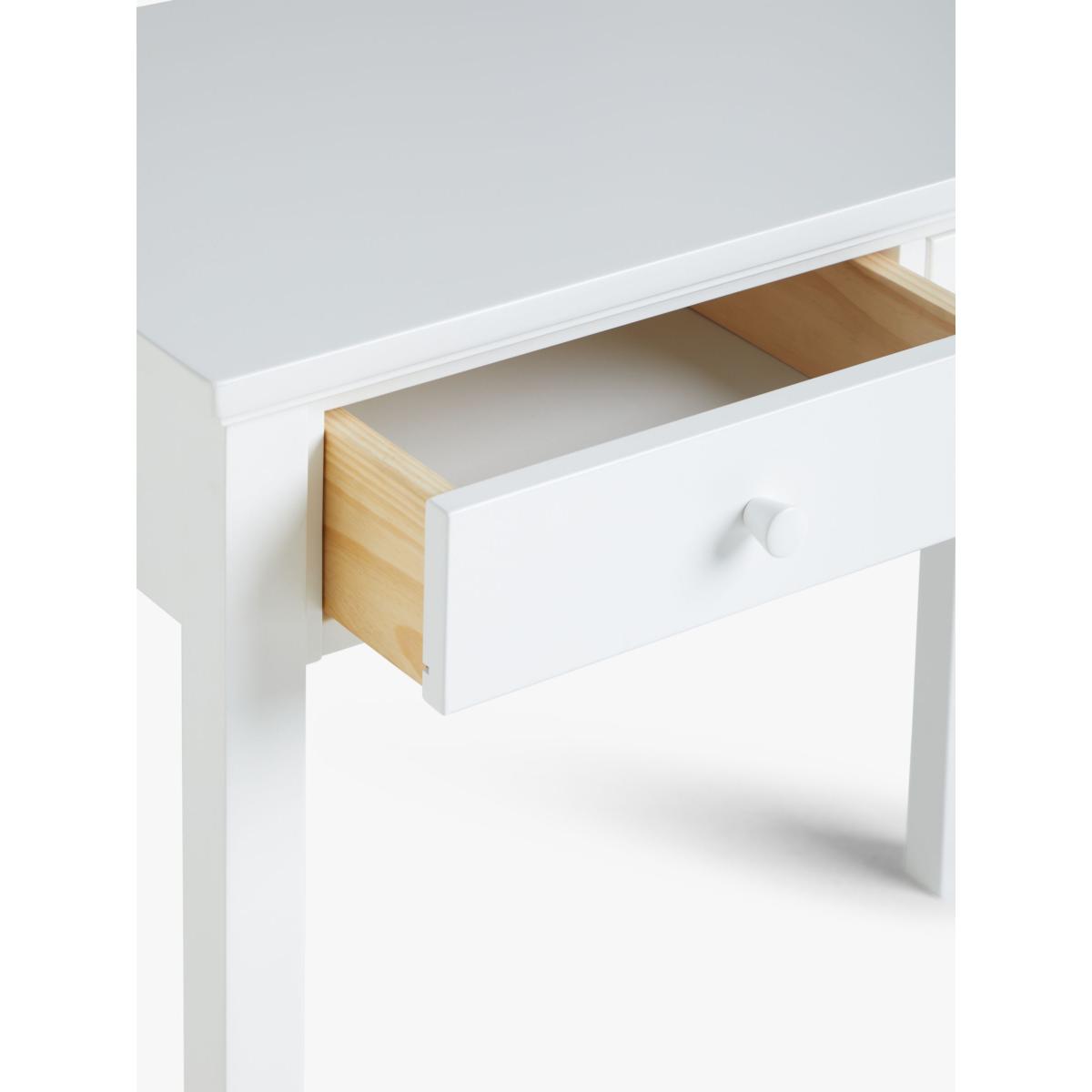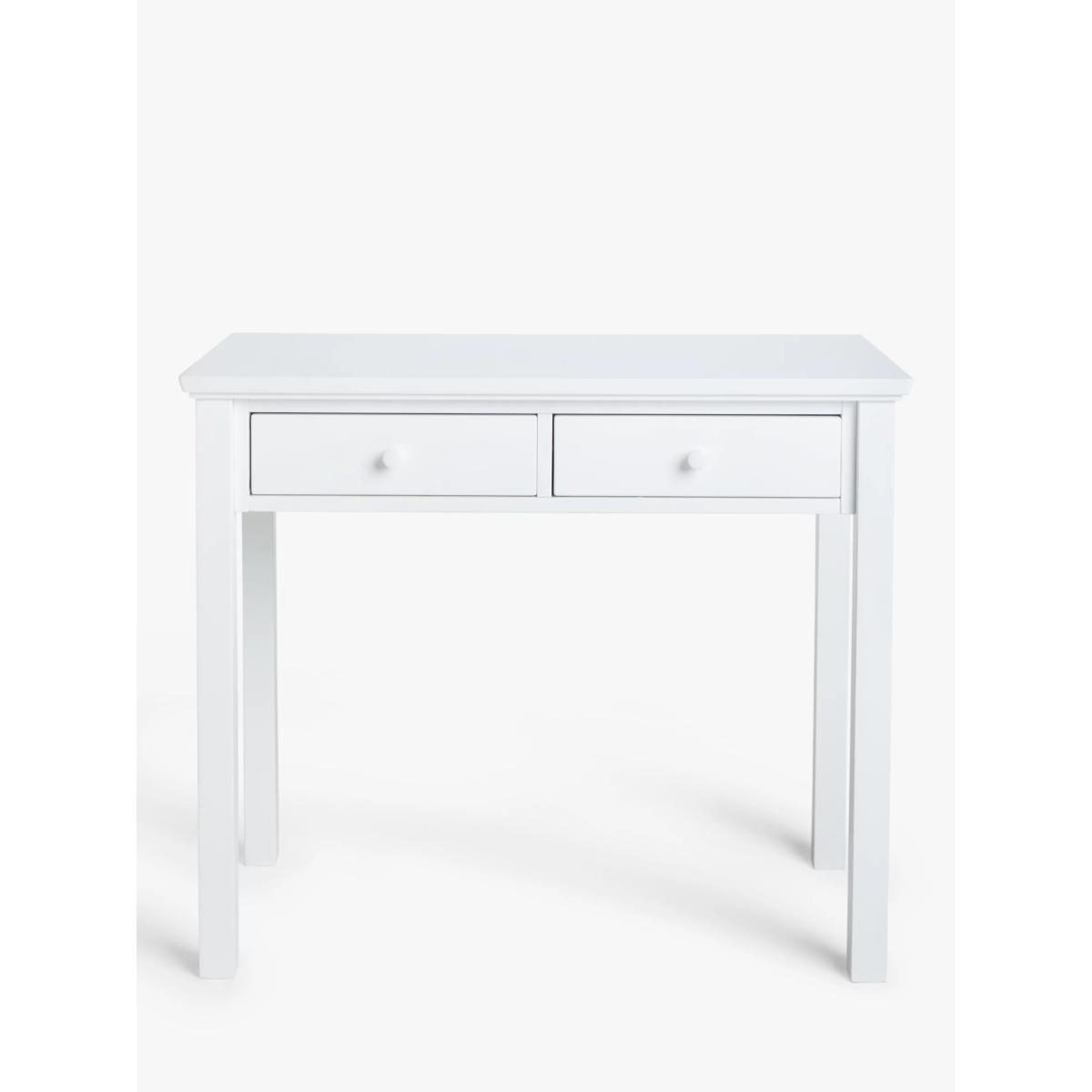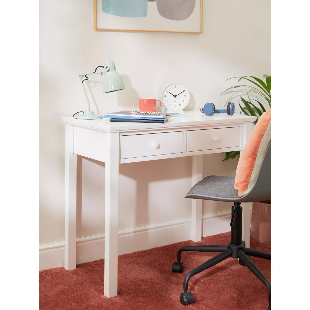 Doubling up as both a desk for your office or a dressing table for your bedroom, we've made this adaptable table from hard-wearing timbers. It's narrow and compact, and thanks to its crisp painted finish, you don't need to compromise on style or quality if you have limited space at home. With two handy drawers for storage, each holding a maximum load of 5kg, it offers just the right amount of space for your essentials. Want to see it first? You may want to see and get a feel for the furniture in one of our shops before ordering. We'll be able to tell you where the range you'd like to view is on display. With great prices and great design, our new brand offers style and quality for modern living today. Whatever you need, there’s joy to be found in ANYDAY.