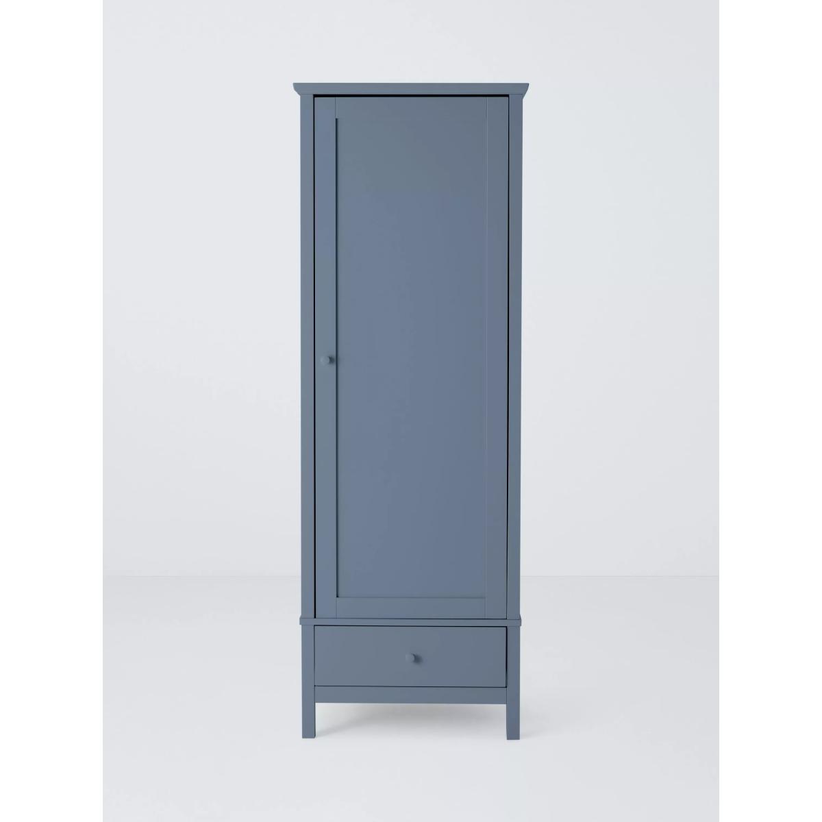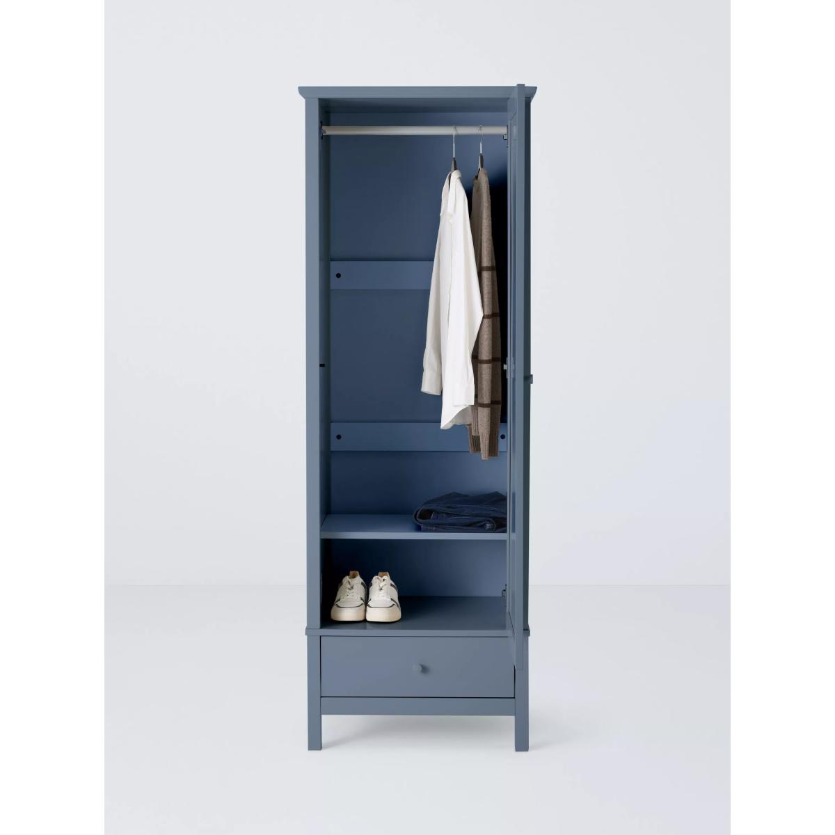 I’m a fan of the Wilton wardrobe for its slim profile and muted finish - it slots neatly into a bedroom corner or hall without overwhelming the space. The simple detailing and soft paint shade work equally well in contemporary, Scandi-inspired or coastal schemes. Styling tips: pair it with natural-toned accessories such as a jute rug or oak bedside table, then use matching baskets on the top shelf to keep clutter out of sight. Inside, add slimline hangers and a fabric shoe organiser on the door to make the most of every inch.