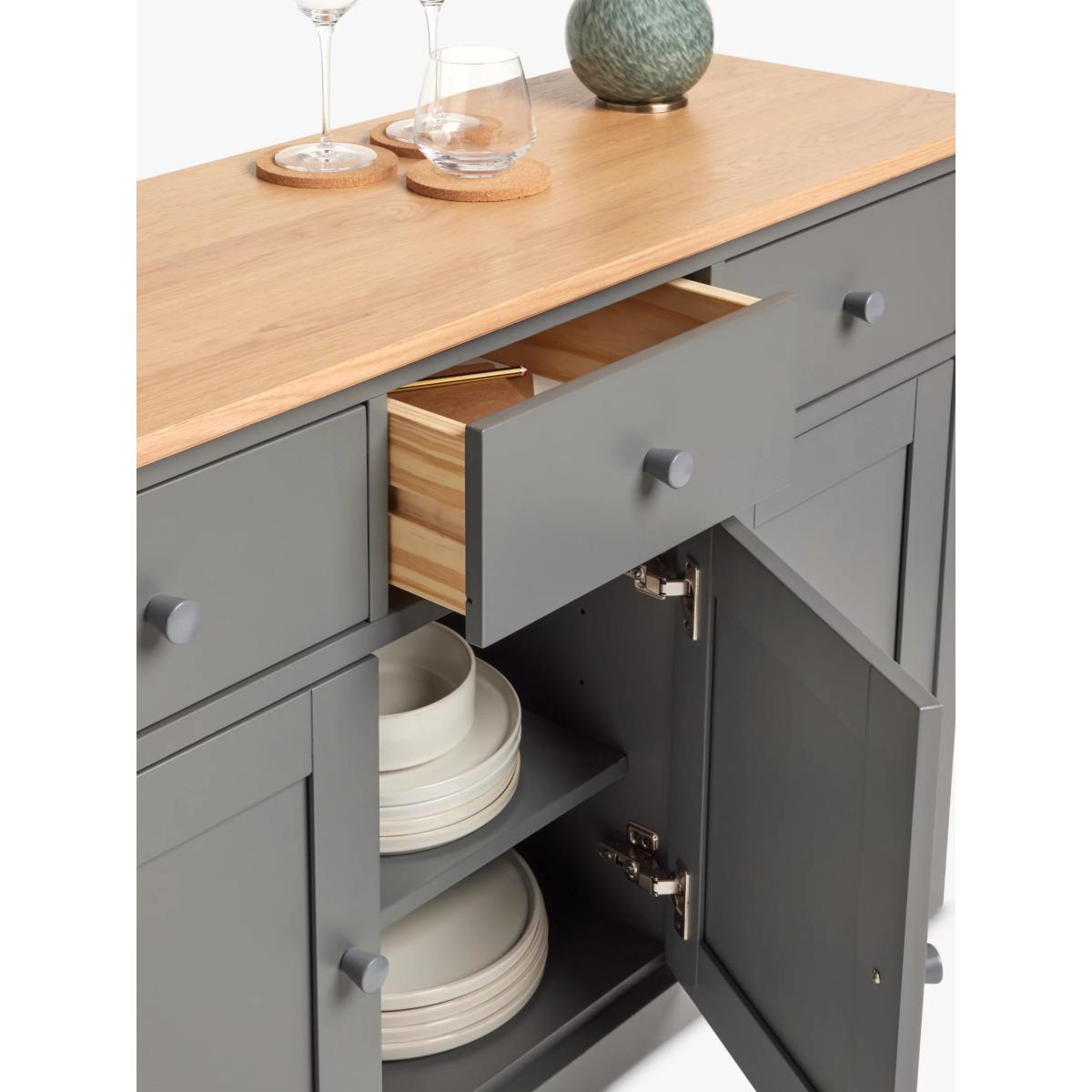 If you have limited space in your home, there's no need to compromise on style or quality as the compact Wilton design is simple but timeless. It comes in a painted and natural finish for a modern look that highlights the authentic wood grain. An elegant sideboard for storing and displaying all your dining essentials. It has three drawers and three doors, each opening onto a fixed shelf. With great prices and great design, our new brand offers style and quality for modern living today. Whatever you need, there's joy to be found in ANYDAY. Want to see it first? You may want to see and get a feel for the furniture in one of our shops before ordering. We'll be able to tell you where the range you'd like to view is on display.