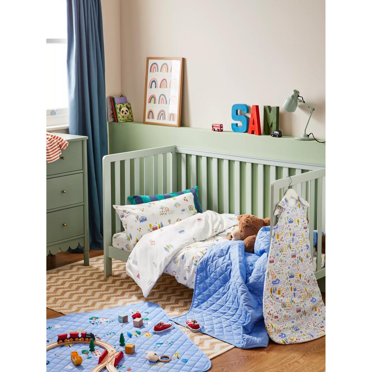 Keep your little one cosy on chillier days with this sweet reversible quilt from our little home at John Lewis range. Made from pure cotton with a polyester filling for extra warmth, it features a wintery forest print on one side and is kept plain on the other side.