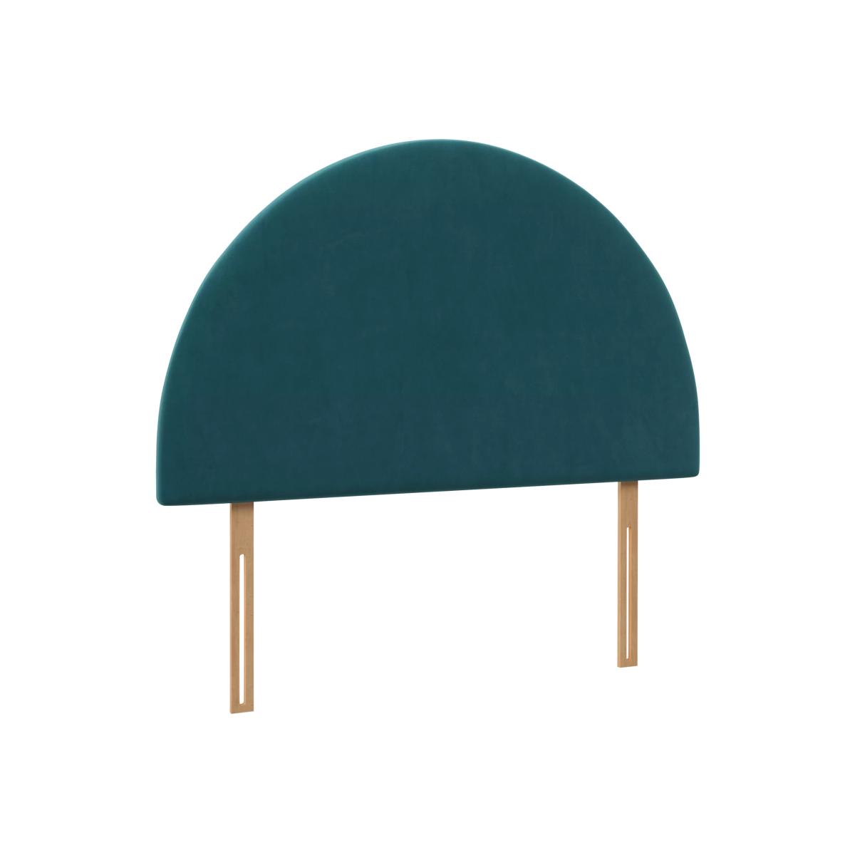 I love this headboard for its contemporary yet versatile aesthetic. The half-moon shape adds a soft architectural element, making it a great focal point in both minimalist and eclectic bedrooms. Its teal velvety finish pairs well with neutral tones for a calming effect or vibrant fabrics for a playful look. This headboard works particularly well in modern or Scandinavian interiors, and it can be styled with layered bedding and textured cushions to create depth. For practical tips, consider pairing it with sleek bedside tables and simple lighting to emphasise its clean lines, or go bold with colourful accessories for a lively, personalised space.
