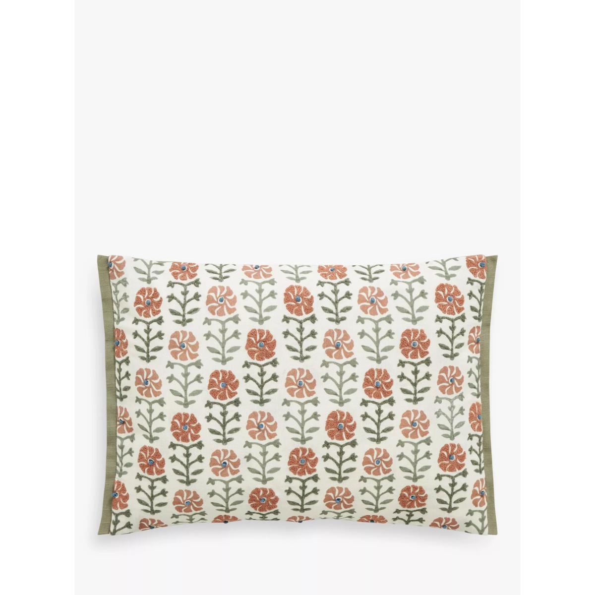 Add country cottage charm to a bed or sofa with this cotton-printed cushion. It's finished with hand-guided machine embroidery and flanged edges.