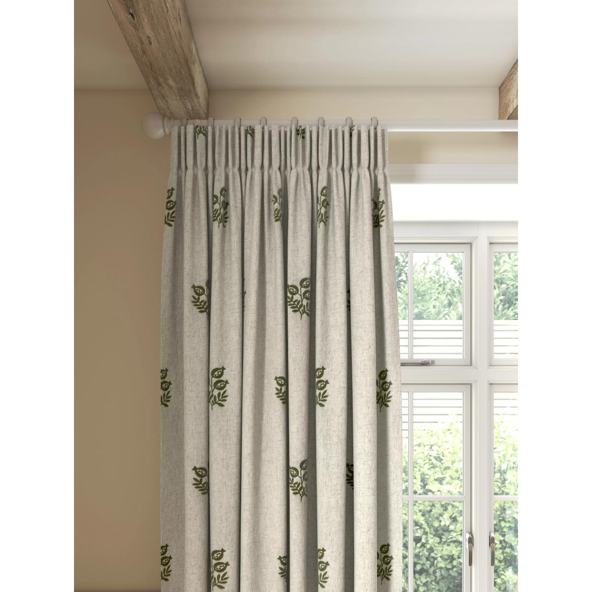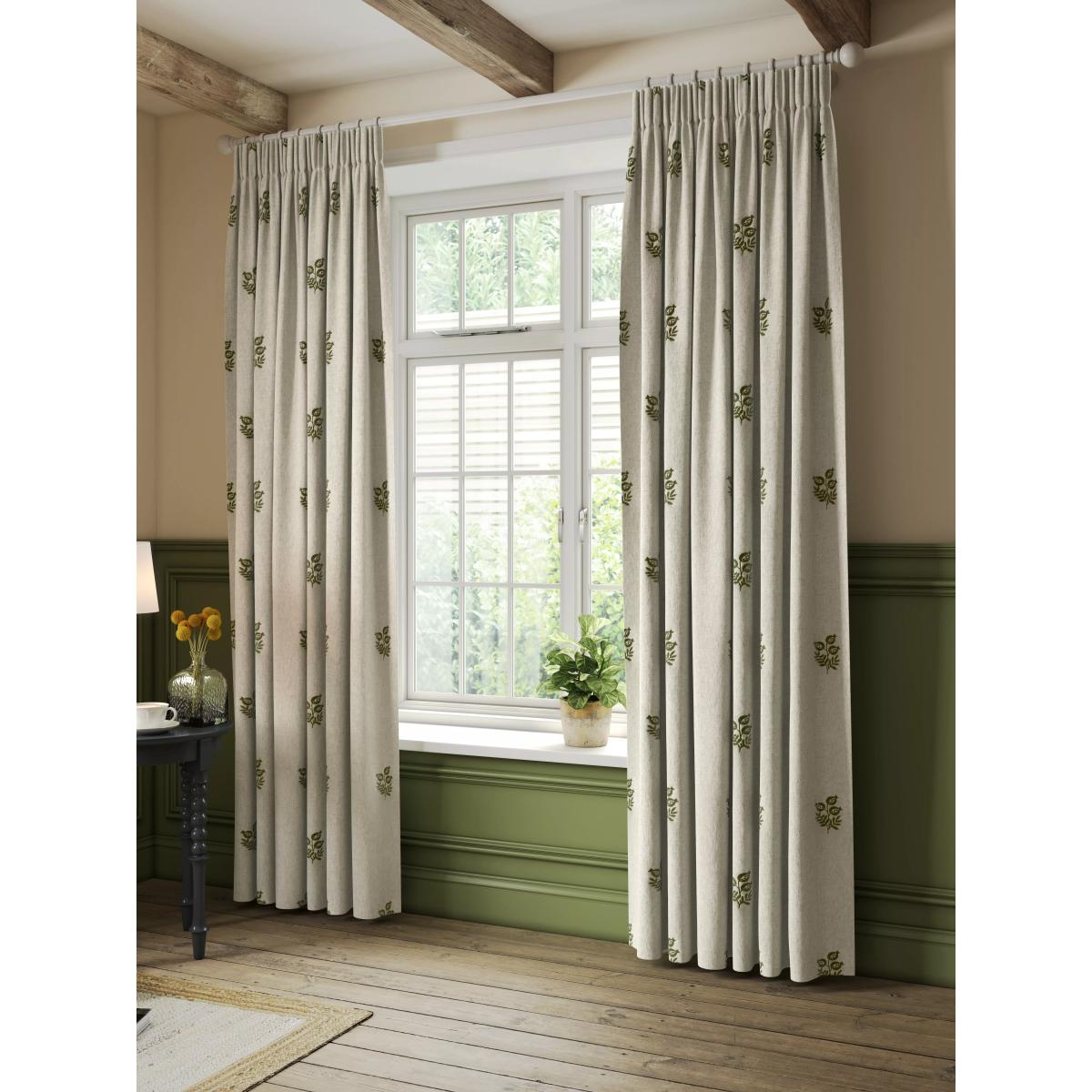 A pretty embroidered floral design in a textured linen look. The lining adds the perfect finish, improving the drape and enhancing the vibrancy of the curtain. Choosing the right size These curtains can be hung with a pole or track using curtain hooks (not included). There are three hook positions on the heading, allowing you to choose how your curtains sit against the track or pole. For example, if you're using a track you may want to use the middle or lower row of hooks to cover the track, whereas if you're using a pole you may want to use the top row of hooks so the curtains hang below the rings. The specified drop is taken from the top row of hook pockets to the bottom edge of the curtain. The width stated indicates the size of one curtain panel when laid completely flat. This pack contains two panels, and the track/pole length we've recommended allows for the two panels to be gathered when the curtains are drawn. For a fuller look, increase the curtain width. One pair of 167cm width curtains will fit curtain track/pole size 133-167cm One pair of 228cm width curtains will fit curtain track/pole size 182-228cm Worth knowing... We package our curtains in recycled materials to keep them protected whilst they make their way to you. When they arrive they may be creased. We recommend you follow the ironing instructions on the back of the packaging prior to hanging your curtains. Be aware that each style of curtain has different ironing instructions, including heat limitations according to the fabric, so do make sure you follow the guidance provided to get the best results. View our selection of curtain poles and rails.