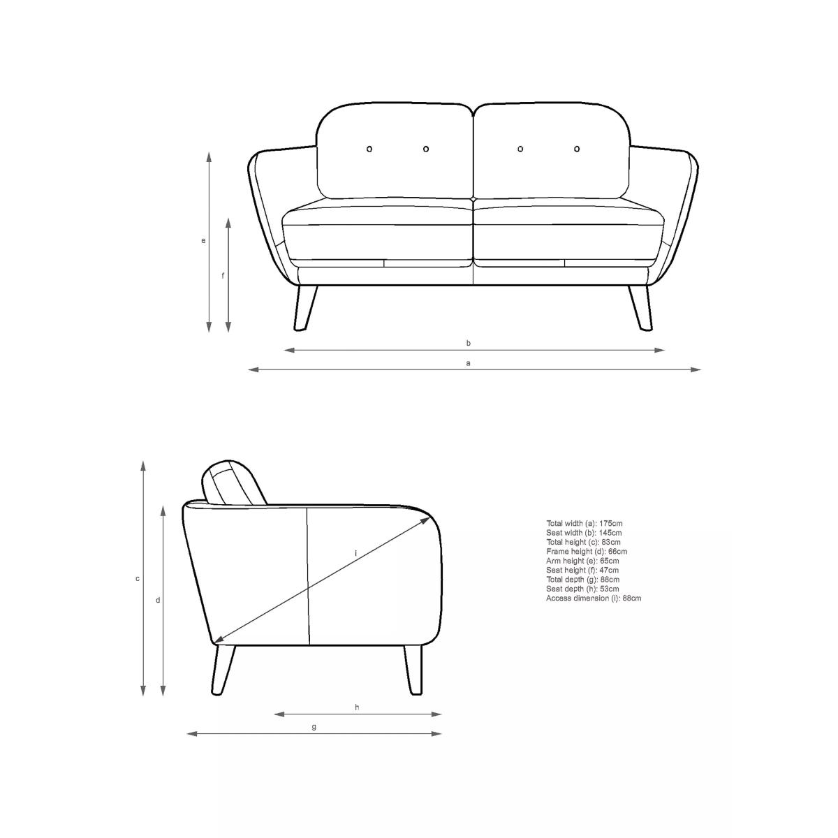 Product Information Specially designed for compact spaces, the Arlo range is a modern take on a mid-century design, featuring a buttoned back and striking frame. Design details Low maintenance, fixed seat cushions Fibre filled back cushions Designer's notesA cool and compact option for your living space, the Arlo range showcases a fuss-free design with a clean and shape silhouette with nods to classic, mid-entury design. Comfort ratingDesigned for those who prefer a firmer sit, this range has a firm comfort rating. Offering our highest degree of support thanks to high density foams, this rating offers strong resistance and also retains its shape well. As leather is a natural product, there are natural characteristics on each leather hide used to make our sofas. These could be things like brand marks, insect bites or wrinkles. A large sofa could be made with as many as four hides so there may also be some slight colour variation, however we have strict guidelines to make sure any noticeable marks aren't in a prominent place. These distinctive qualities also mean that no two pieces of leather furniture will be exactly the same. Owing to variations in computer screen resolution and settings, the fabric you receive may look slightly different to how it appears here. Prior to purchasing, we strongly recommend that you are order a free sample online. It's the little thingsWe care about our furniture; how it's designed, the materials used and the people who make it. That's why every detail is carefully considered, with more than 20 quality checks, to ensure you're as proud of it as we are. Try before you buyWe're confident in our furniture's quality, but it's always a good idea to check that it's a good personal fit for you. Working in partnership with Clearabee If you need help disposing of your old sofa when ordering a new one we have teamed up with Clearabee to offer a convenient and cost effective solution, diverting 100% of products from landfill*. Find out more by visiting our Clearabee partner page below. *Products will be exited via energy from waste exit routes and diverted from landfill in compliance with regulations. Measuring Up for Furniture Guide Sofas, Sofa Beds & Chairs Buying Guide Upholstery Care Guide Clearabee Sofa Collection Service