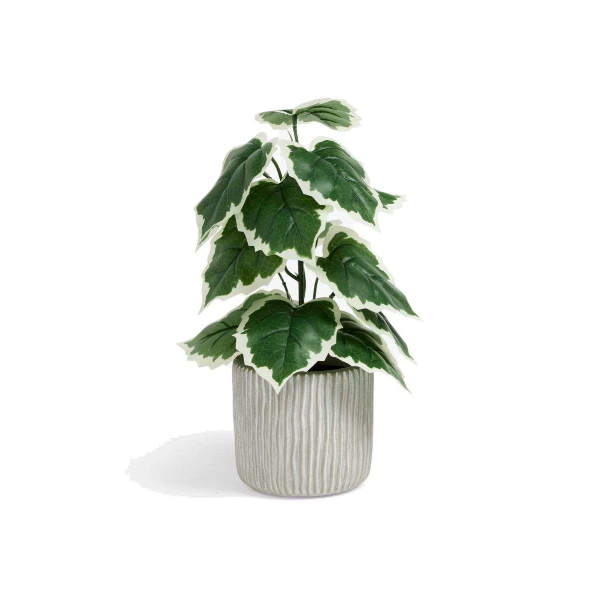 Bring a sense of nature home with this artificial variegated fig plant in a ribbed cement pot, a striking contrast of texture and tone. Very low maintenance — just give it a little dust now and then.