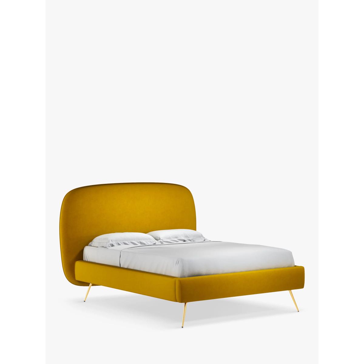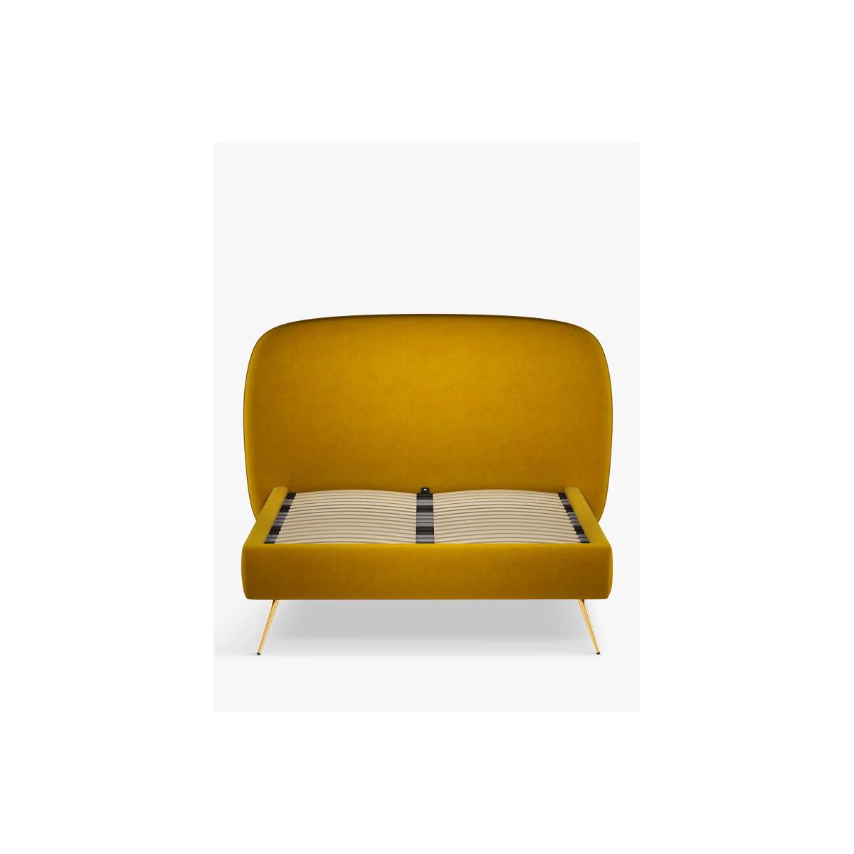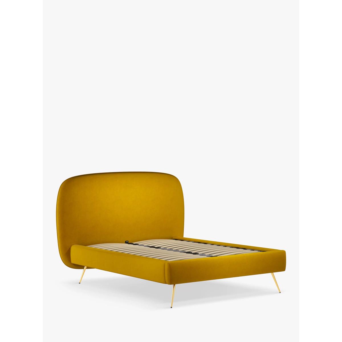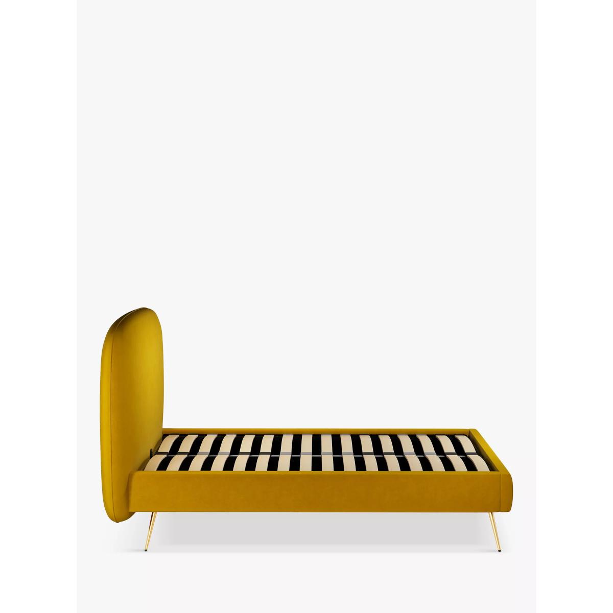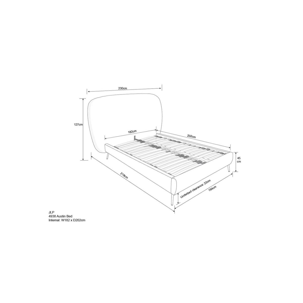 We’ve made the headboard a defining design element of the Austin bed frame, showcasing a statement curved shape and piped edging. Finished with brass tapered legs and made from high-quality timbers. Its sprung slats provide a more supportive foundation for your mattress. Assembly service Our assembly service is included in the selling price for our Made to Order beds. At the same time as delivery, we'll build your new bed and place it in your room of choice. We'll take away all of the packaging too, for recycling. Built with Smart SlatsThis bed frame is designed with wider slats at the shoulders, lumbar and feet. They provide maximum support for you and your mattress so that you experience perfect spinal alignment while you sleep. The standard slat caps are black so we have added grey slat caps to ensure that you know where to place the wider slats. Choose from one of our fabrics: Our Band A fabric, Cotton Effect has a laid-back and fine-textured look that looks like cotton, but it's made from durable polyester fibres Our Band B fabric, Deep Velvet will bring warmth and luxury to your bedroom. It's a short pile velvet with a soft, plush feel Our Band B fabric, Relaxed Linen gives you the fine texture of cotton, the durability of synthetic fibres and the laid-back look of linen Our Band C fabric, Aquaclean Velvet will liven up your bedroom. It's plush, available in a range of bold colours and treated with Aquaclean so that it can be wiped clean with just water. A smart choice for families and those with pets Want to see it first? You may want to see and get a feel for the furniture before ordering. Pop into one of our shops to see the full range of colours and fabrics on offer. We'll be able to tell you where the range you'd like to view is on display.