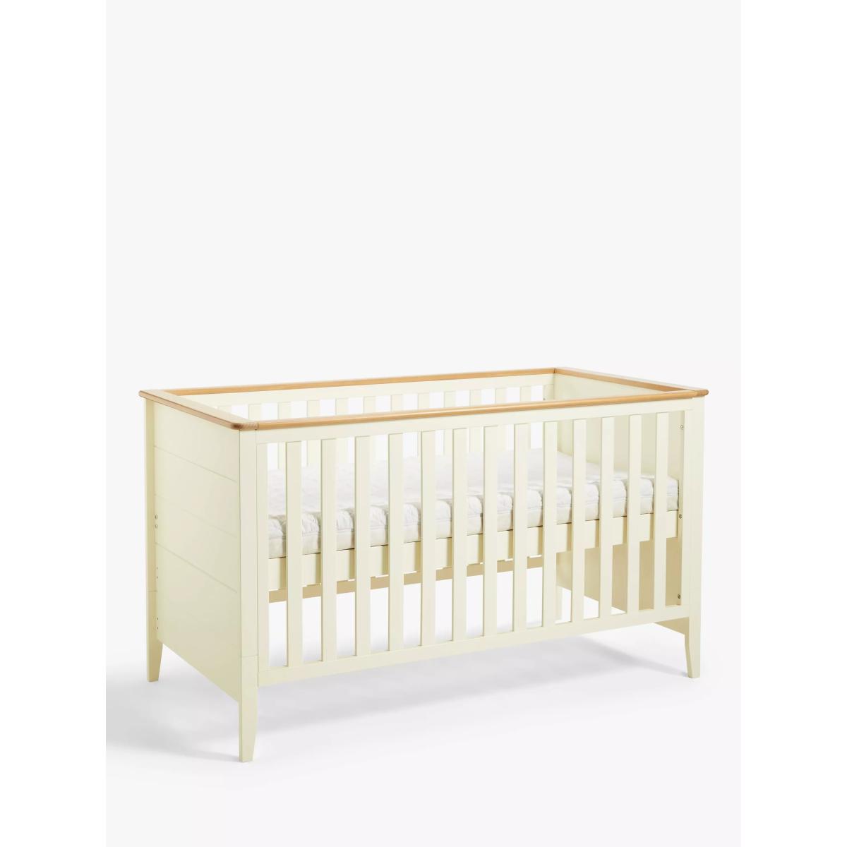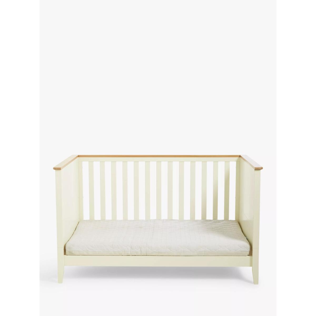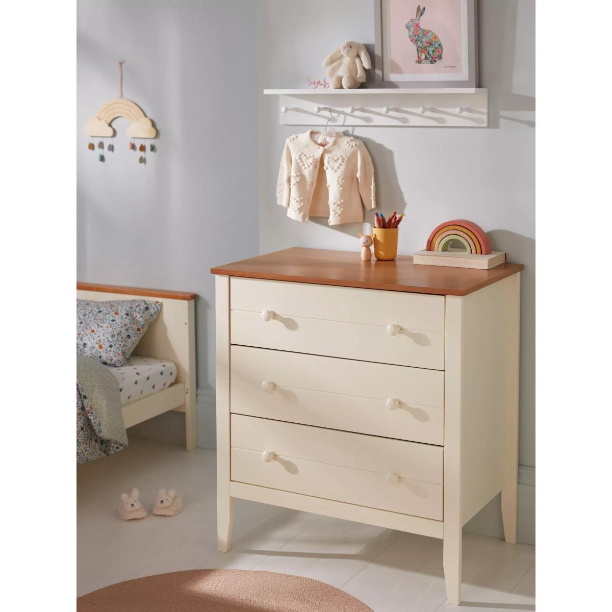 Get your nursery sorted with this cotbed and dresser bundle from our Avery range. The sleek contemporary style of the range combines painted and natural wood for a look that works with most nursery themes. Thoughtfully designed, the Avery cotbed is the perfect sleep space for your little one from birth until well into their toddler years. With 3 base heights you can adjust the cot as they grown and even convert it to a toddler bed when they're ready. Suitable from birth, this cotbed requires a standard 140 x 70cm mattress with a maximum thickness of 12cm (sold separately). The cotbed complies with safety standards EEN 716-1:2017+AC:2019 & EN 8509:2008+A1:2011. The contemporary, understated dresser features a handy nappy changing area to the top and three drawers for easy storage. This item complies to EN 12221-1:2018+A1:2013 safety regulations. We've made the spacious double wardrobe from high-quality solid pine, MDF and veneers. There's a metal hanging rail inside and a dividing storage shelf in the middle. Good to know: The changing unit is suitable from birth until 12 months or 11 kg. Please note: a changing mat is not provided. This changing unit is suitable for a changing mat measuring up to 735 x 480 x 50mm. Please place changing mat within the barriers located at the top of the changing unit. WARNING: Do NOT leave your baby unattended on the changing table for any length of time. This changing unit must be fixed to the wall for safe use of the product. The fastenings used should be appropriate to the wall. Please check assembly instructions for further information.