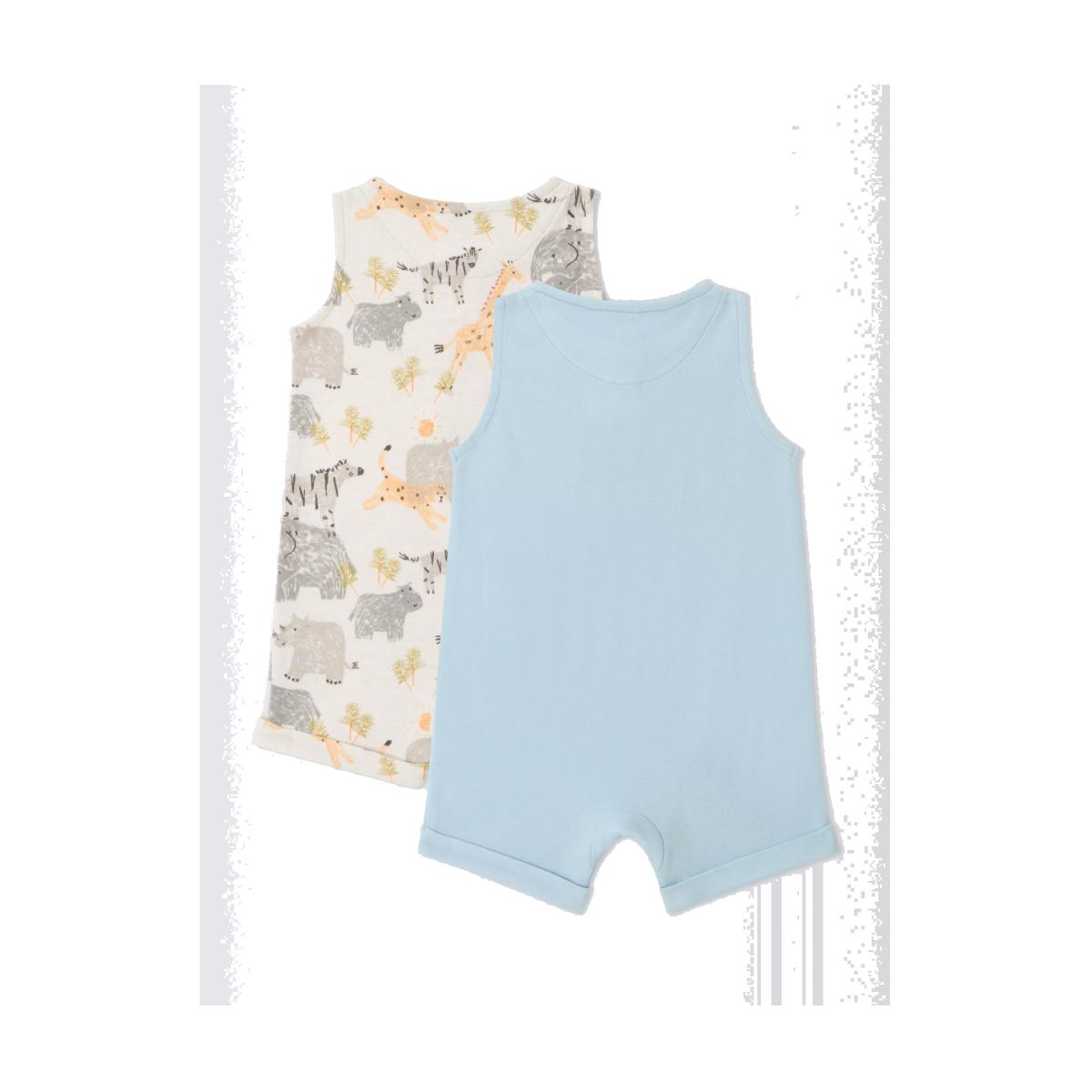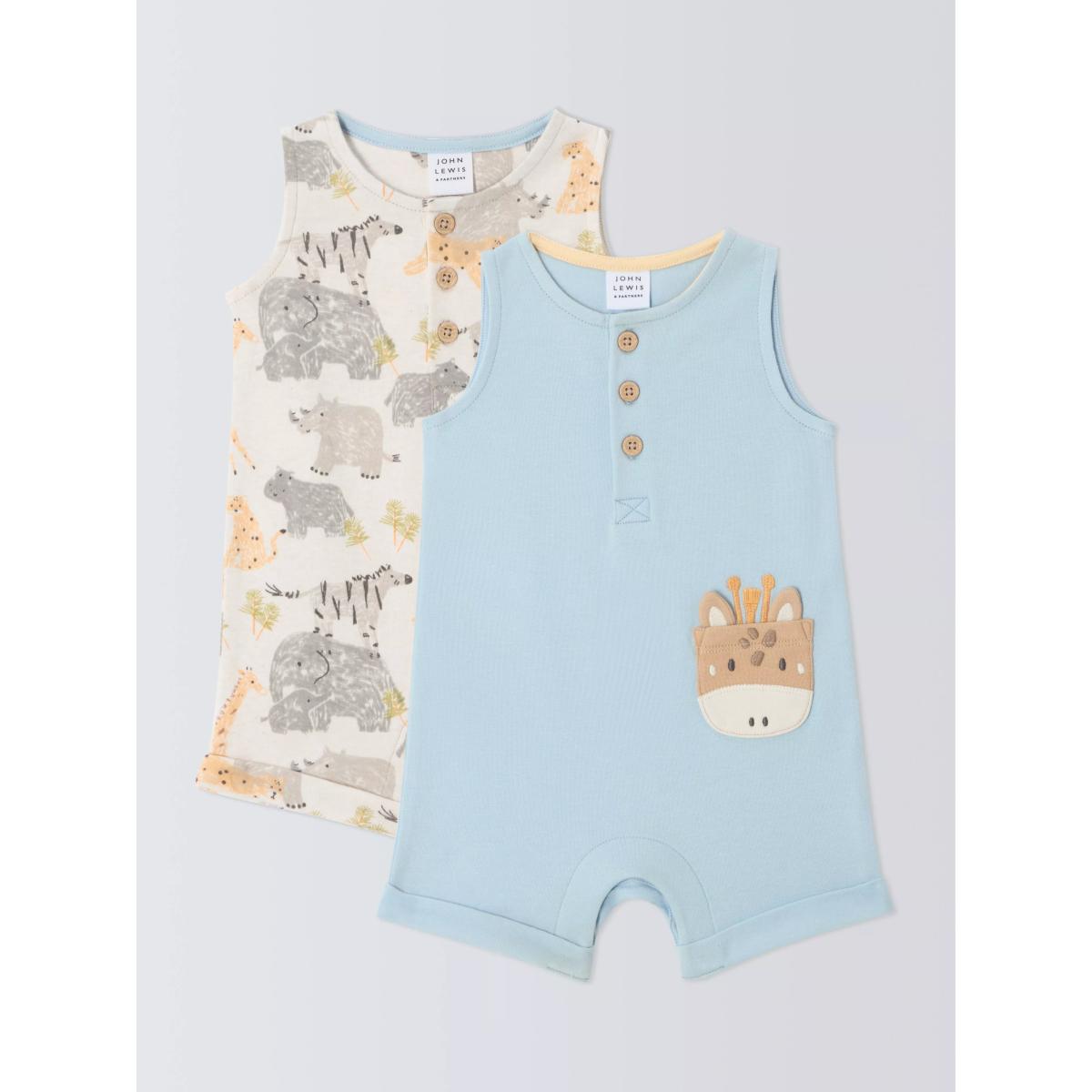 John Lewis Baby Cotton Safari Print Sleeveless Romper, Pack of 2, Multi