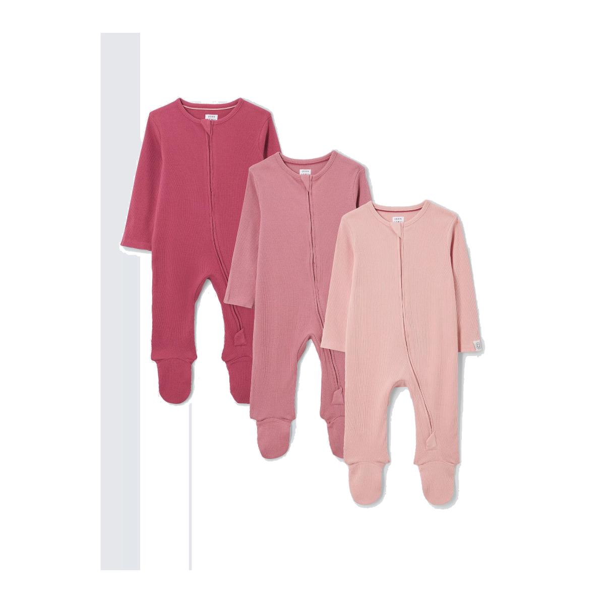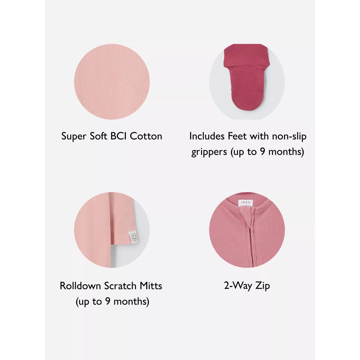 Made from soft and breathable cotton with a subtle ribbed texture, these sleepsuits are a staple addition to any baby's wardrobe. Designed with a two-way zip-through front (no faffing about with poppers here), you can zip from either the top or the bottom making them brilliant for speedy nappy changes, especially in the dark. Plus with the enclosed feet you won't need to worry about socks being kicked off ever again. Good to know: Comes with non-slip grippers on the feet for sizes 9-12 months and upwards only and scratch mittens on sizes below 6 months only. These garments come up on the large side of a size so we would suggest buying one size down. To maintain the best appearance and shape, tumble dry after washing.