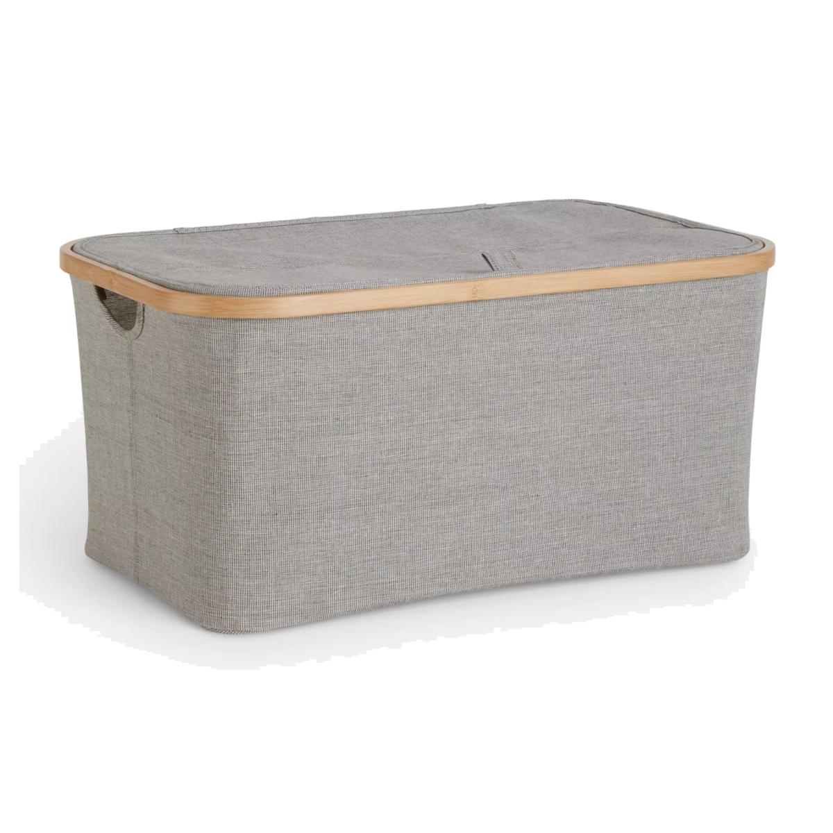 This large, lidded bamboo rim basket has plenty of capacity and is ideal for storing shoes, out-of-season clothing or accessories at the bottom of a wardrobe. It collapses flat when not in use.