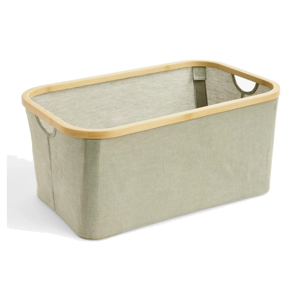 This roomy storage basket has a sturdy bamboo rim to help keep its shape and four sturdy bamboo rods for support. Ideal for toys or as a laundry basket. It collapses flat when not in use.