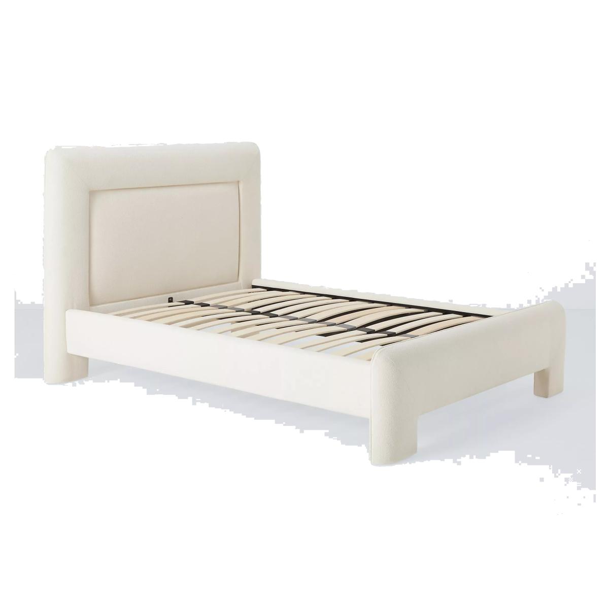 I’m a fan of the J.L. boucle bed for its clean, squared-off silhouette and tactile off-white fabric - it works just as well in a pared-back Scandi scheme as it does in a soft-luxury look. The low frame keeps the room feeling spacious, so layer on textured throws and cushions in warm neutrals or muted pastels for depth. Pair it with slimline, light-wood bedside tables and a simple brass lamp to balance the chunky form. It also takes a statement rug easily, so choose one with a subtle pattern to ground the space without overwhelming it.