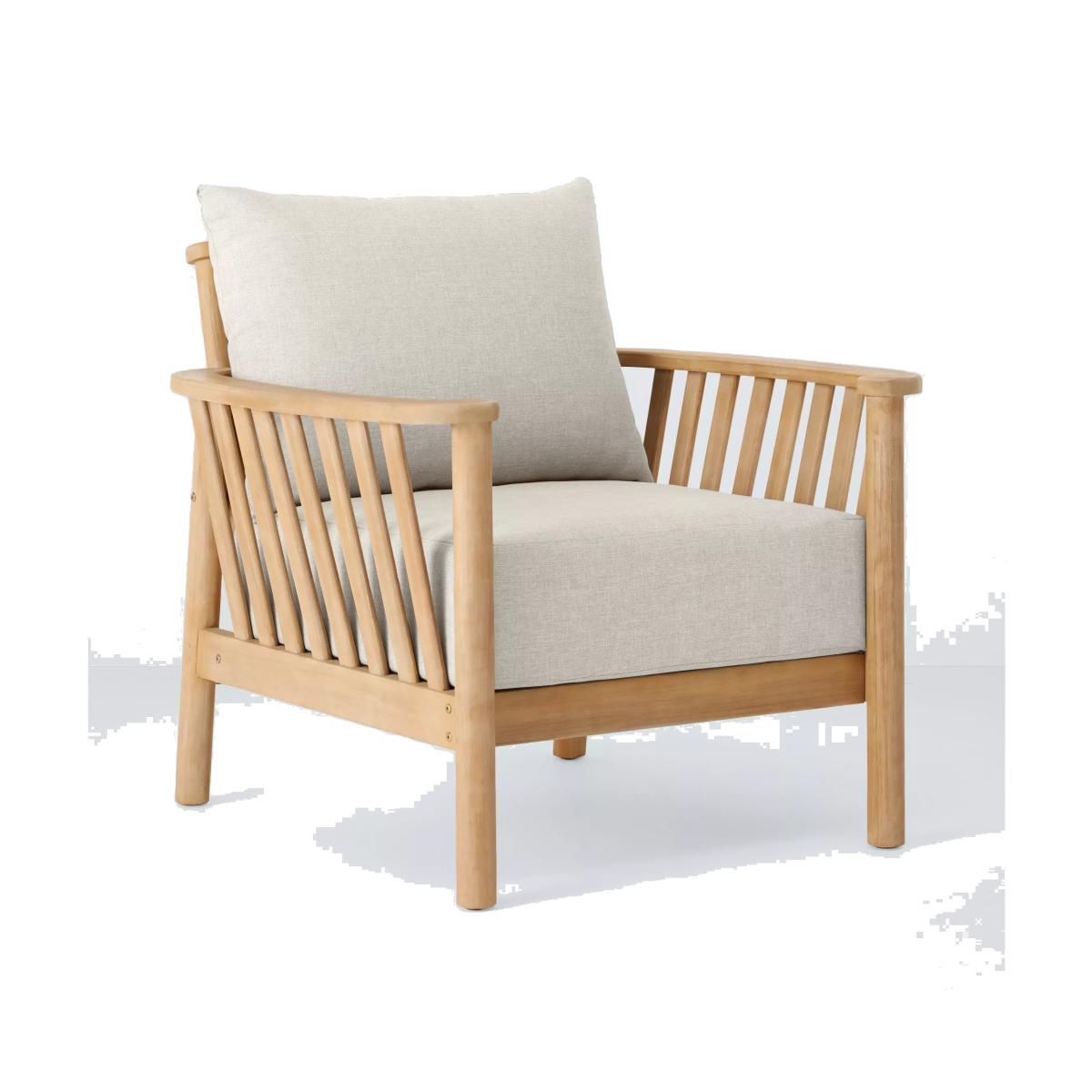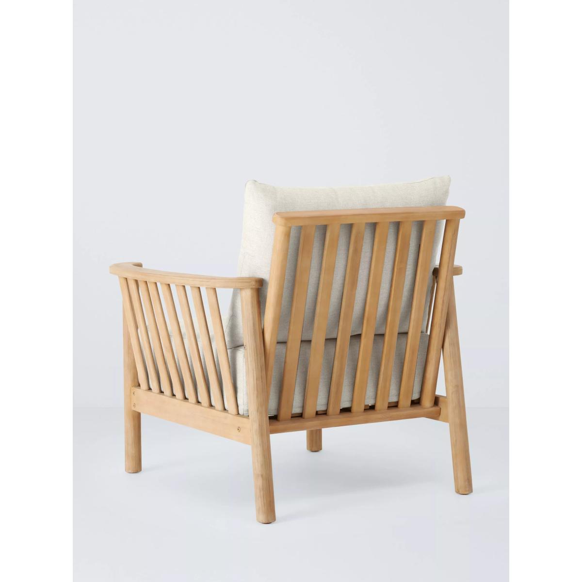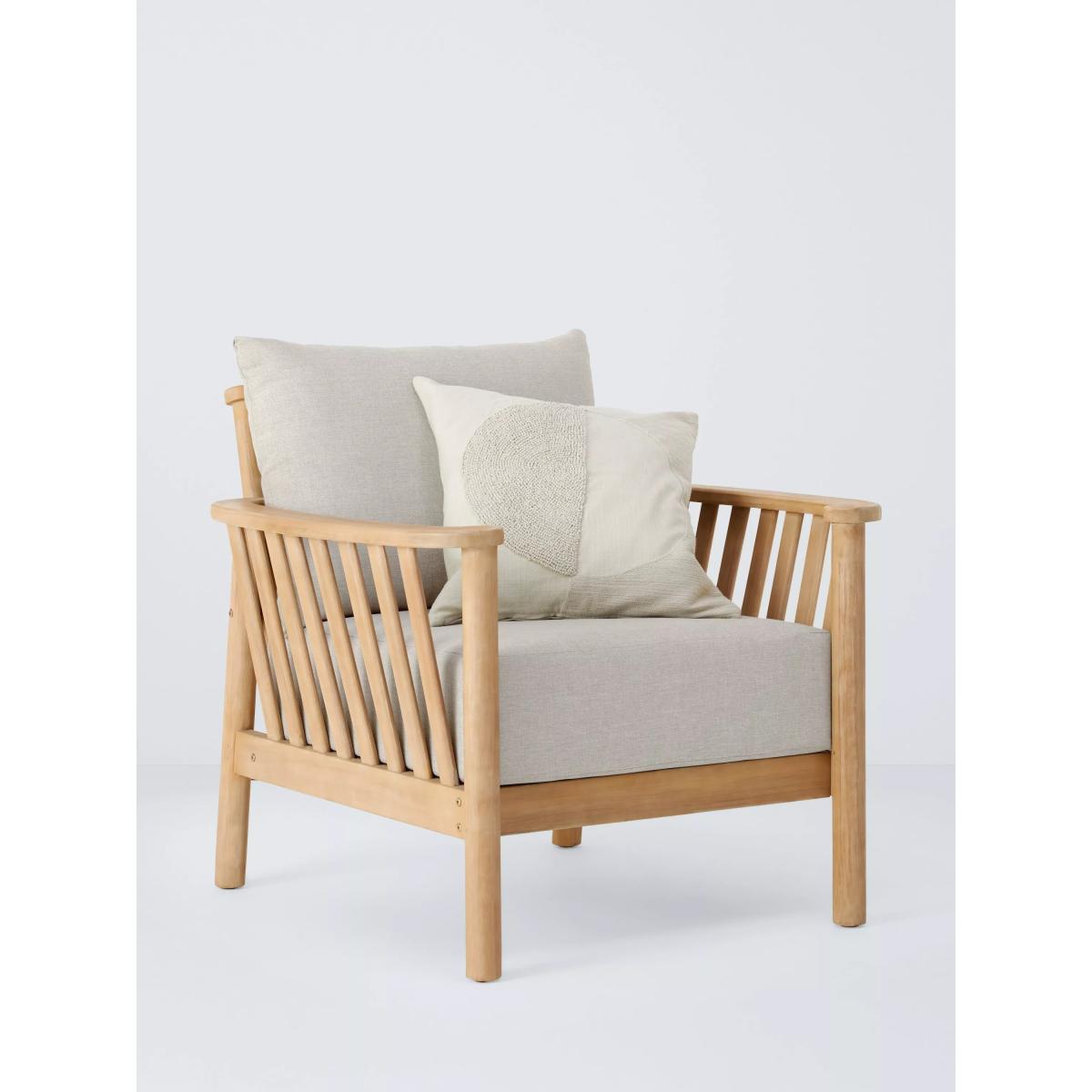 Our Boardwalk furniture is made from hardy and naturally weather-resistant FSC-certified acacia wood. This Boardwalk lounge chair has an ergonomic and generous design with deep, sumptuous and shower-resistant seat and backrest cushions. The oatmeal fabric works tonally with the timber finish. "We really focussed on making these transitional pieces — that means the same furniture can work just as well in a garden as it does in a conservatory or sunroom." — designer Matthew Steels, John Lewis Design Studio. Key features: Ergonomic shaped lounge chair Weather-resistant FSC-certified acacia wood Shower-resistant sumptuous seat and backrest cushions Team with our Boardwalk range of garden furniture Garden furniture care: To keep your outdoor furniture in the best condition, store it in a cool, dry, well-ventilated spot indoors over the winter. If it’s staying outside, use an outdoor furniture cover whenever the weather is wet or unseasonal. Make sure furniture is clean and dry before storing it away, and keep cushions in a clean and dry place when not in use. By choosing this product you are supporting responsible management of the world's forests. The Forest Stewardship Council® (FSC®) is a global, not-for-profit organisation that helps take care of forests and the people and wildlife that call them home. To learn more, visit fsc.org. Choose the perfect outdoor furniture We have a selection of wooden furniture for you to choose from which will suit the home or garden. Below are a few options to consider when choosing your perfect outdoor furniture. TeakA premium and popular wood with an attractive appearance which ages beautifully. Strong, durable and resistant to rot and decay, this furniture requires little maintenanceEucalyptusDistinctive scent and appearance which darkens as it ages. Provides similar natural benefits to teak including moisture resistance, hardness and durability. It's plentiful in supply which makes the furniture an inexpensive choice. AcaciaNaturally durable, this wood is incredibly hard and is unlikely to suffer damage during everyday use. It provides similar natural benefits to teak, yet unlike many other hardwoods, acacia is also relatively fast growing which minimises the environmental impact.