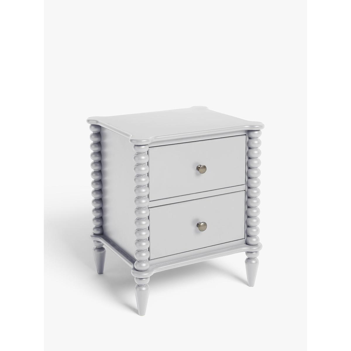 A revival of eclectic 17th century designs, our Bobbin range of furniture will bring a heritage feel back into your home. Decorative design points are awarded for this painted bedside table's round bobbin legs and shapely frame, which adds character and charm, and it's also impressively sturdy thanks to a combination of high-quality rubberwood and MDF. Complete with two deep drawers, who said bedside storage had to be boring? This one is practically sized and a perfect amount of playful. Want to see it first? You may want to see and get a feel for the furniture in one of our shops before ordering. We'll be able to tell you where the range you'd like to view is on display.