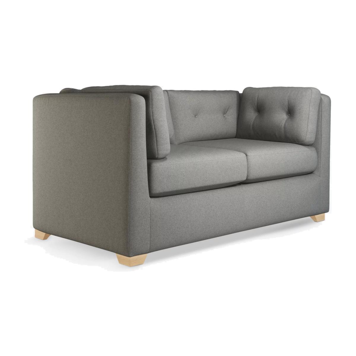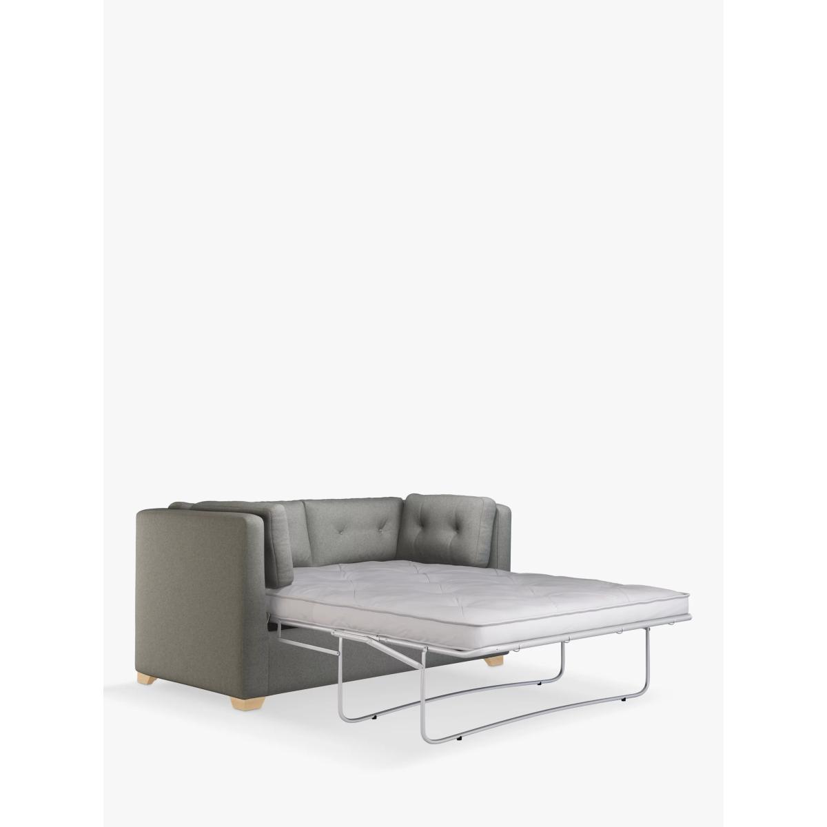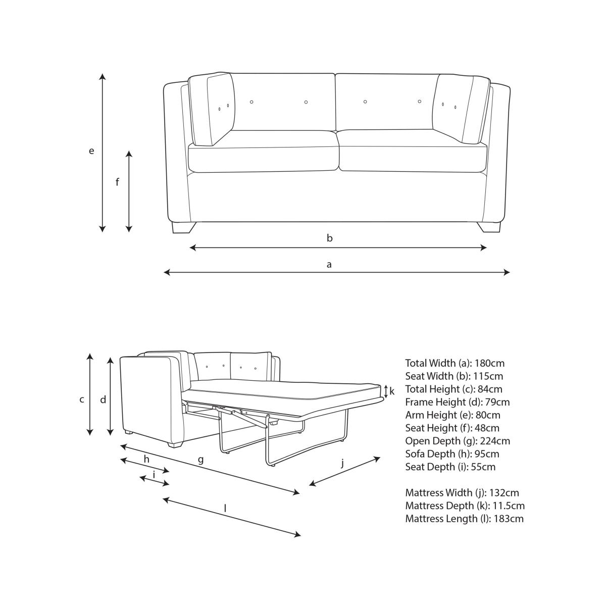 Product Information Tailored Booth features show wood legs and button detailing on the seat back and arm pads. The foam seat and fibre back cushions offer a supportive and inviting sit. A classic mattress type for a peaceful night's sleep The mattress in this sofa bed uses traditional Bonnell Springs making it only slightly less deep than a standard double bed mattress. Open coils and generous layers of polyester fibre fillings provide soft cushioning and comfort. Suitable for occasional use. Sits like a sofa, sleeps like a bed When assembled as a sofa the seats are supported by flexible webbing, the same as traditional sofas. Using a 2-fold mechanism it opens into the bed, which is supported by beech slats much like many beds. This combination of webbing and slats means it's not a case of either a comfortable sofa or a comfortable bed. You get both. Pattern placement We have a wide range of fabrics for you to choose from as part of our Design Your Own service. There's a spectrum of colours and textures, as well as a mix of plain and patterned designs. If you choose one of our patterned fabrics just be aware that the image above is there as a guide and may not be representative of the finished item. We've reproduced the product as best we can but the pattern placement may vary. It's the little things We care about our furniture; how it's designed, the materials used and the people who make it. That's why every detail is carefully considered, with more than 20 quality checks, to ensure you're as proud of it as we are. Try before you buy We're confident in our furniture's quality, but it's always a good idea to check that it's a good personal fit for you.