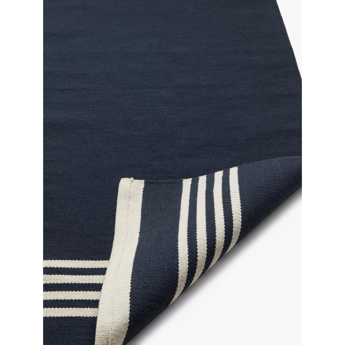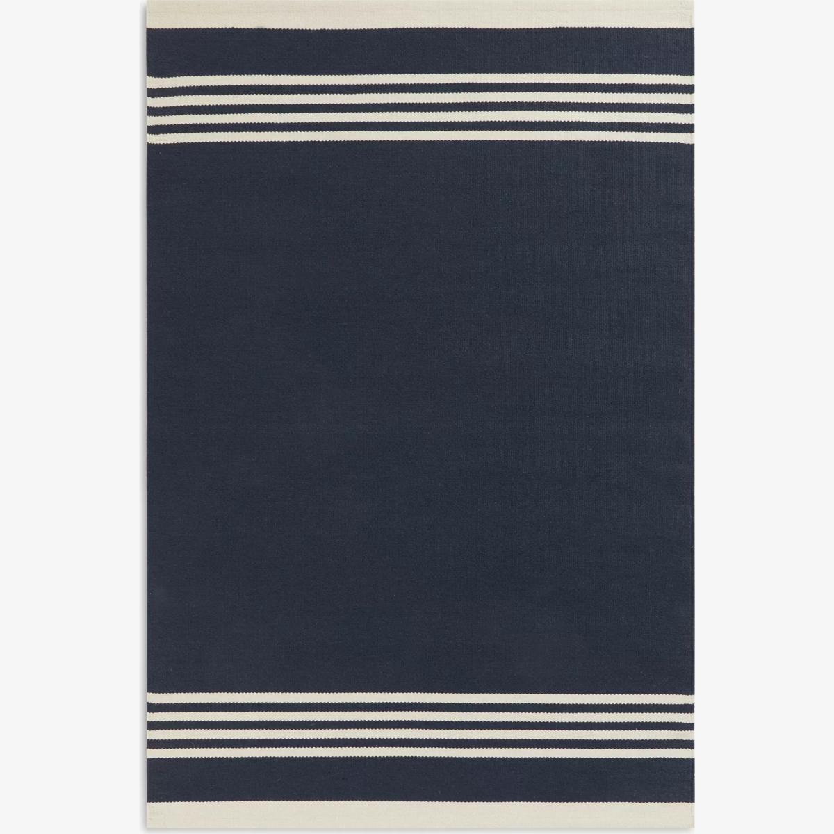 Accented with smart stripes at either end, this rug is made using at least 243 recycled water bottles, helping us to reduce our impact on the planet. Durable enough to be used inside or outside, this rug is the perfect choice for conservatories or decking. With a flat finish making this rug ideal for busy, high-traffic rooms, the materials in this rug have been woven together by hand to create a strong construction. About your new rug We recommend John Lewis & Partners Rug Hold Underlay. It prevents your rug from moving underfoot and protects against colour transfer to the floor Vacuum occasionally. When vacuuming your rug, use suction only. Rotating brushes may damage your rug Blot any spills with a clean, dry cloth. Do not rub. Spot clean using a mild soap solution Suitable for cleaning with a hose down or wet cloth