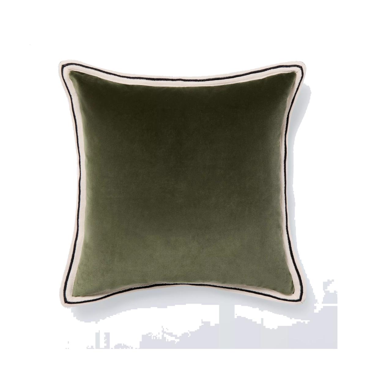 I love this cushion for adding a touch of understated luxury to both traditional and modern interiors. The velvet border offers a subtle design detail that elevates its look, making it versatile enough for sofas, armchairs, and even beds. Its deep green shade pairs beautifully with neutrals, metallics, or richer jewel tones, offering plenty of styling flexibility. For a polished aesthetic, try layering it with textured throws or mixing it with patterned cushions for visual interest. Practical tip: due to the velvet finish, spot clean when necessary to keep it looking pristine, and consider pairing it with other soft furnishings in similar hues or textures for a cohesive look.