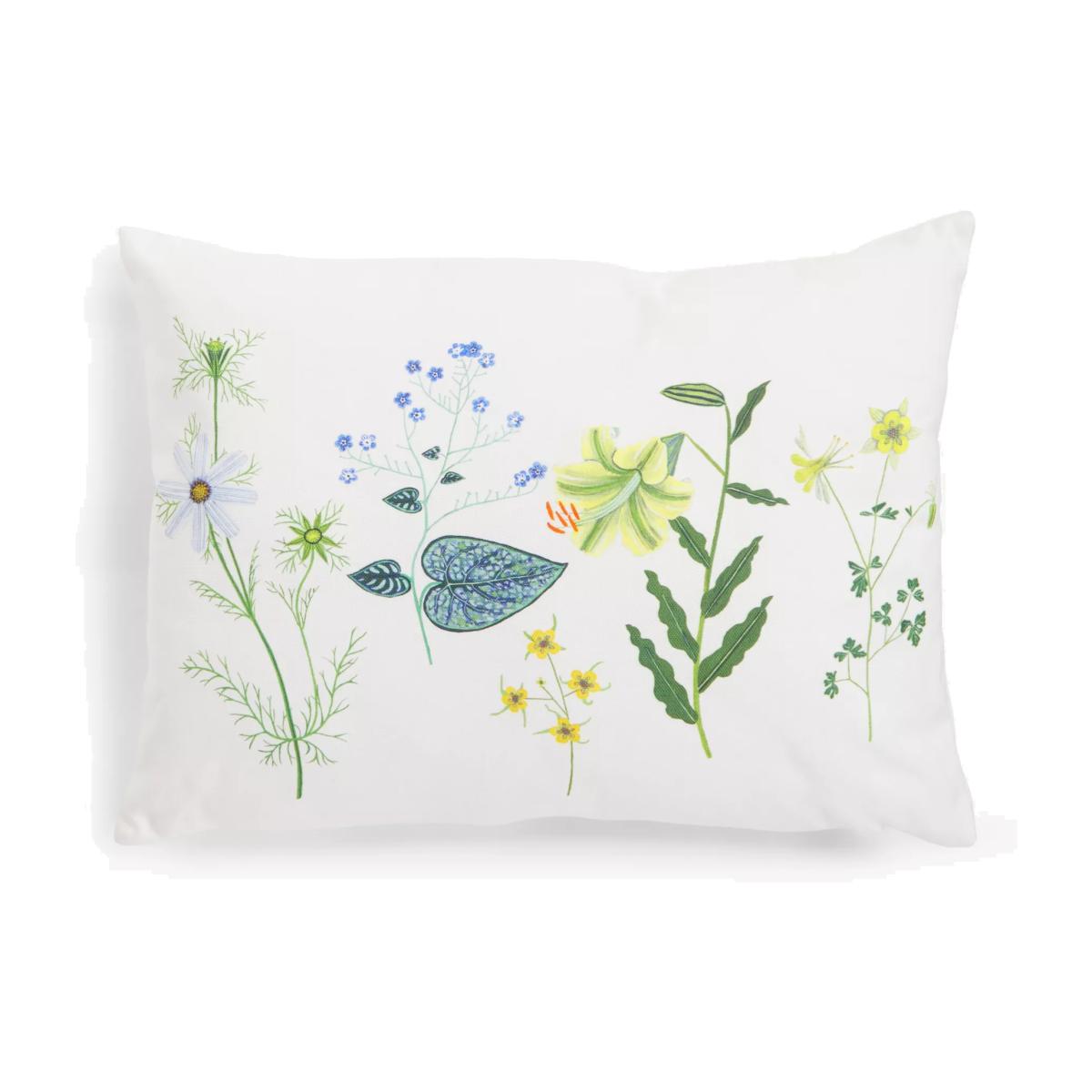 This digital print cushion features delicate wildflower specimens on the front and a plain reverse.