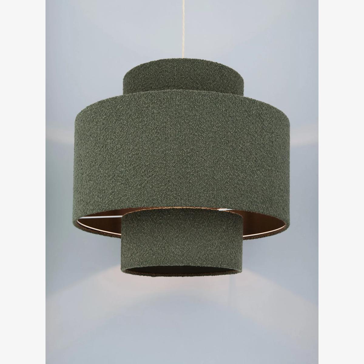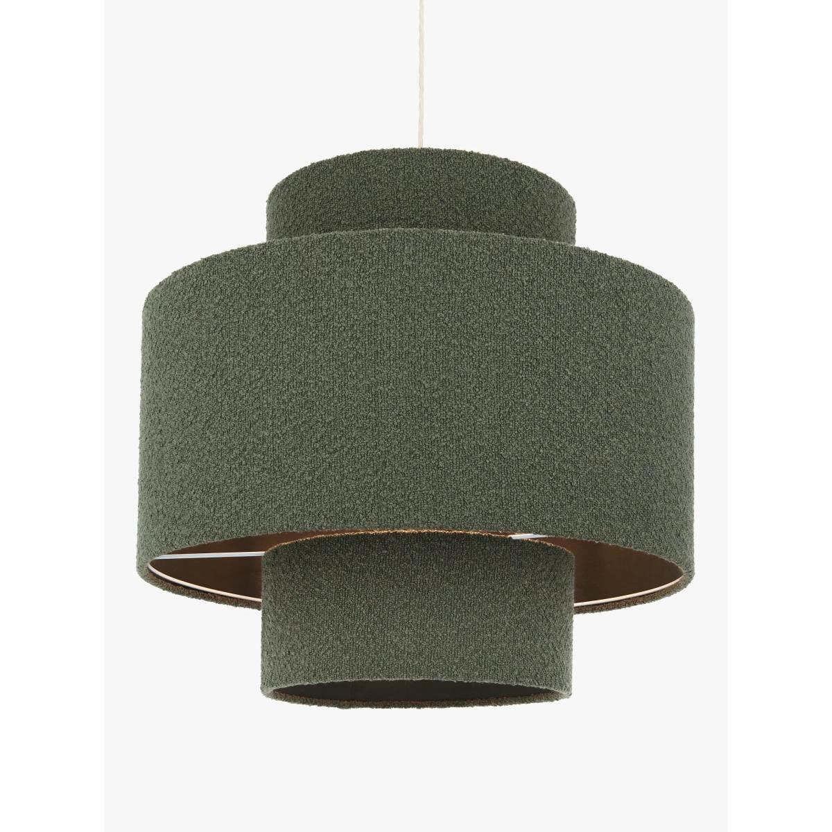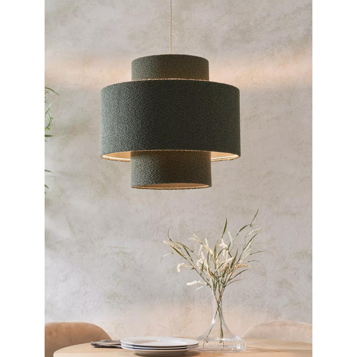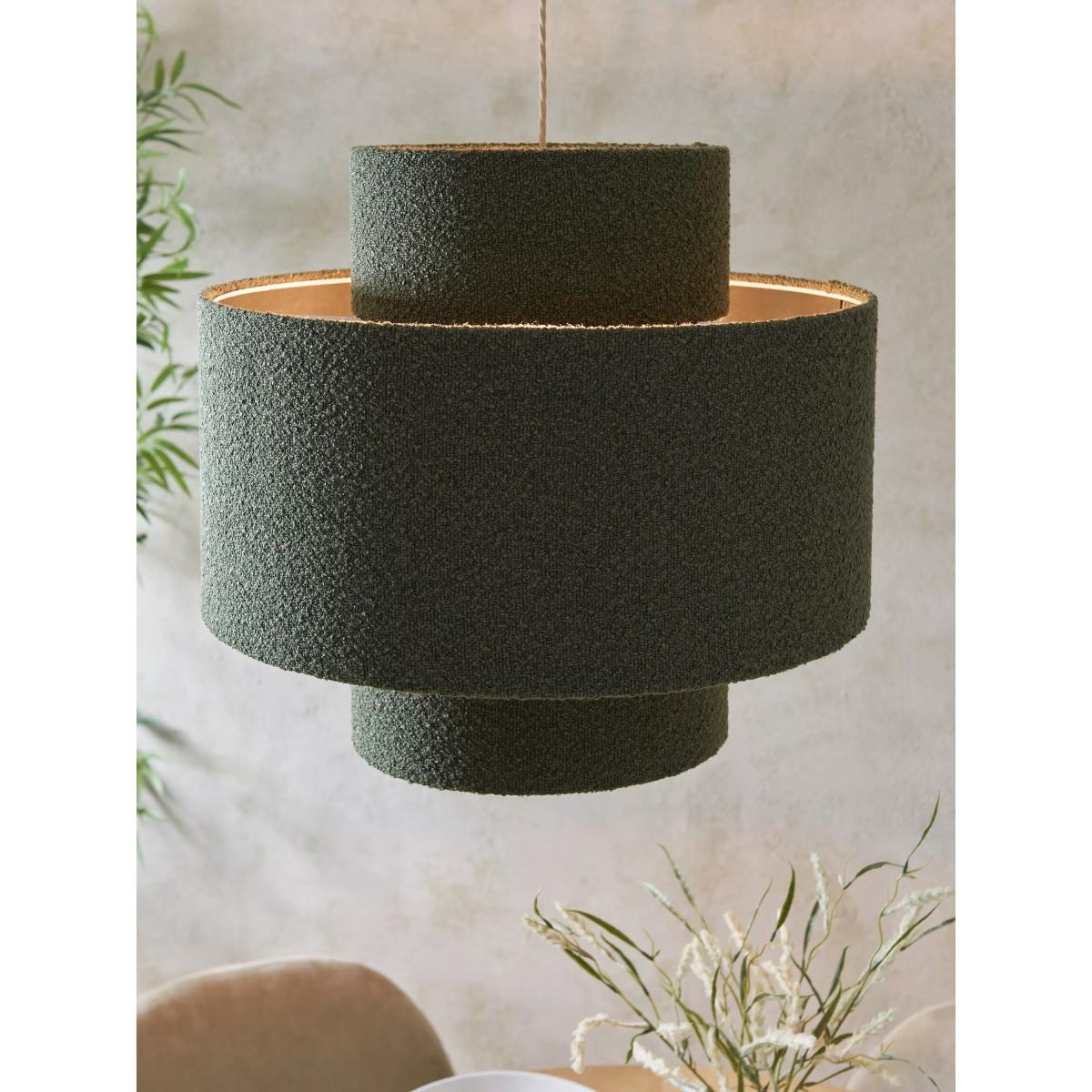 Layered lampshade, a contemporary look that suits most ceiling fittings in a living room and bedroom. The oversized profiles soften the glow of light and the on-trend boucle fabric adds texture to a room.