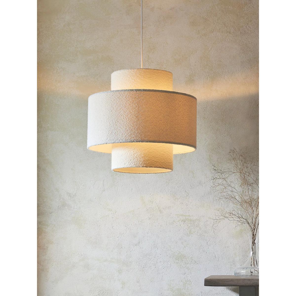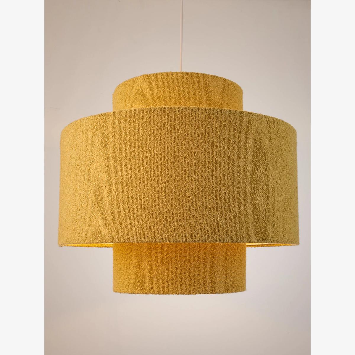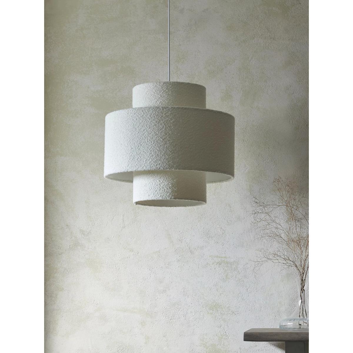 Layered lampshade, a contemporary look that suits most ceiling fittings in a living room and bedroom. The oversized profiles soften the glow of light and the on-trend boucle fabric adds texture to a room.