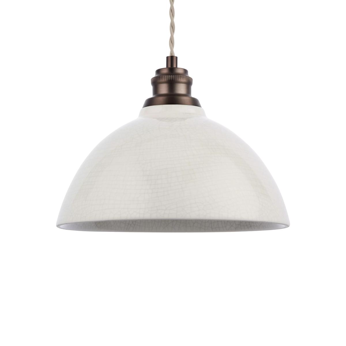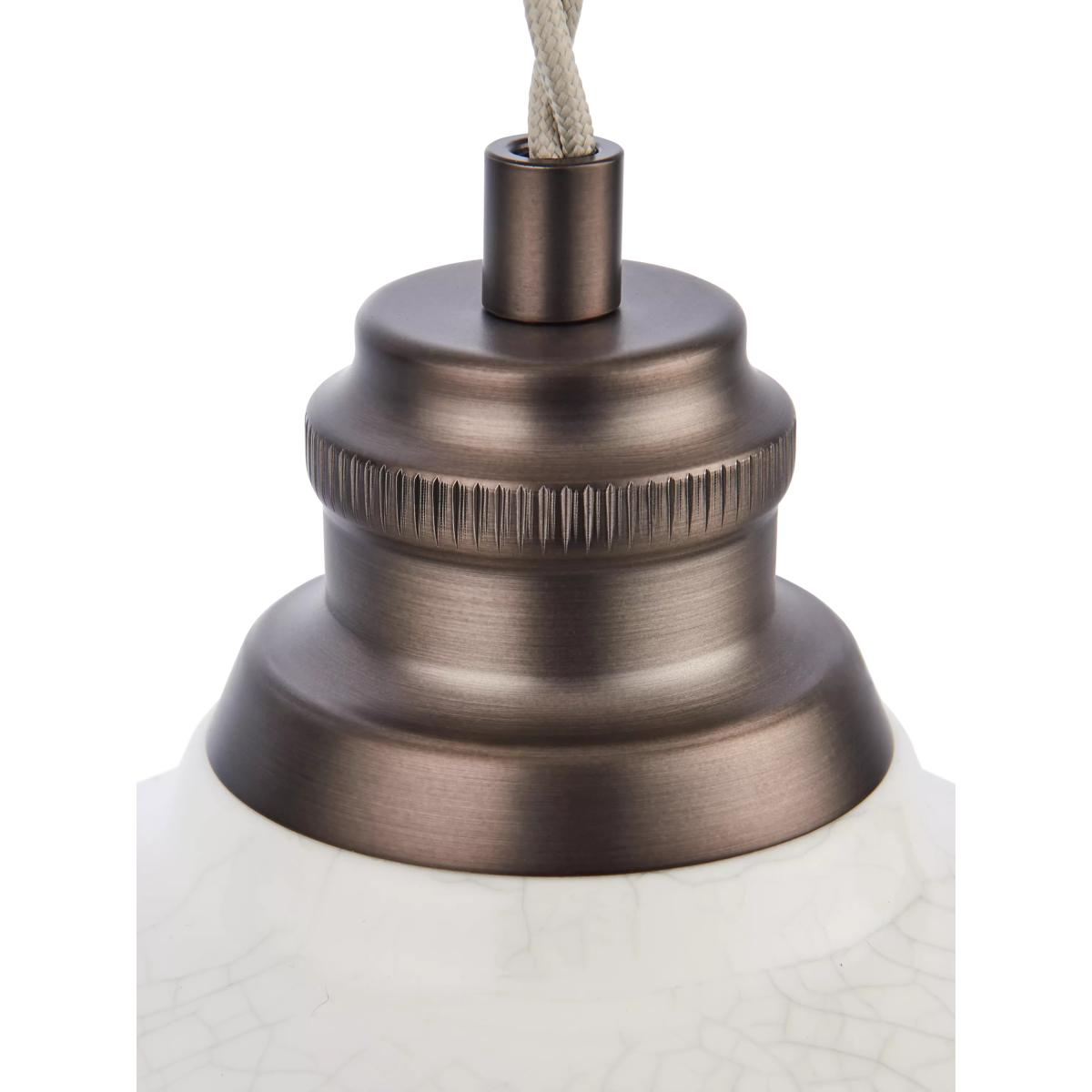 The Bourton pendant is crafted from earthenware and features a gloss crackle glaze on its tree lampshades, giving it a timeless, aged appearance. The dark antique bronze-effect plate and fittings beautifully complement the putty crackle finish, creating an elegant rustic aesthetic. Good to know: This product is handcrafted from ceramic using a reactive glaze, resulting in unique patterning. Any variations are a natural aspect of the artisanal process, making each piece truly one of a kind.