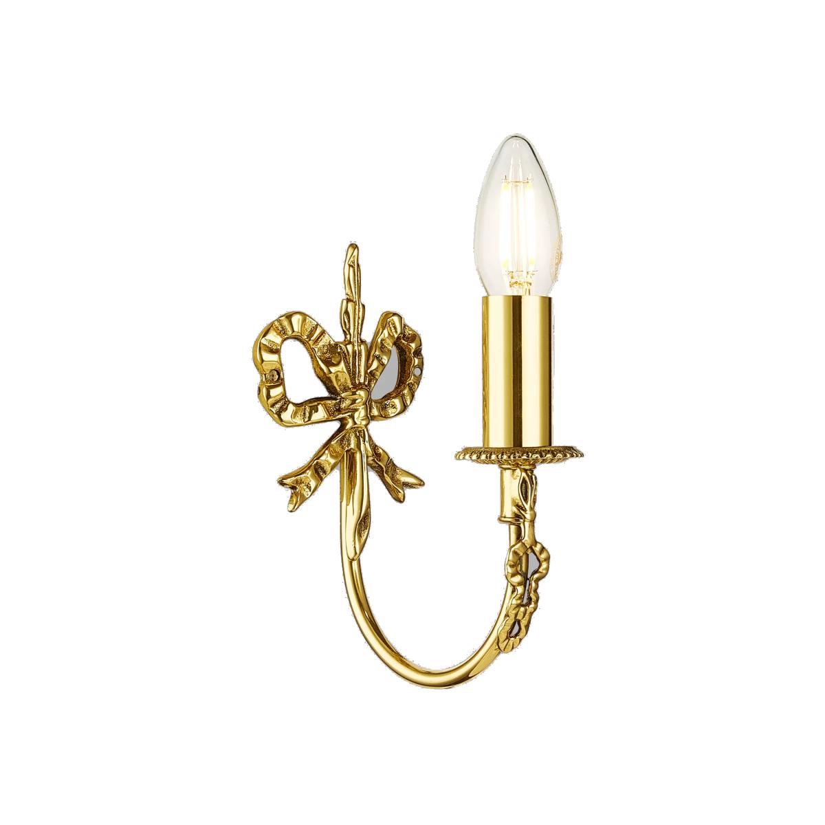 Crafted from solid brass with an exquisite antique brass finish, this single wall light features a distinctive bow design. A traditional, decorative look for your room.