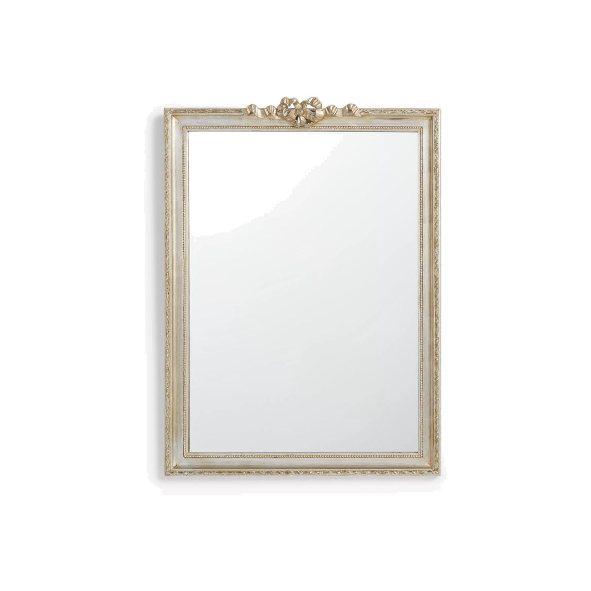 An antiqued finish creates a vintage look on this wood frame wall mirror. Decorative details include a bow at the top and beading on the inner frame. The mirror is ready to wall-mount using the D-ring fittings on the back. Have you thought about wall hooks and fittings?