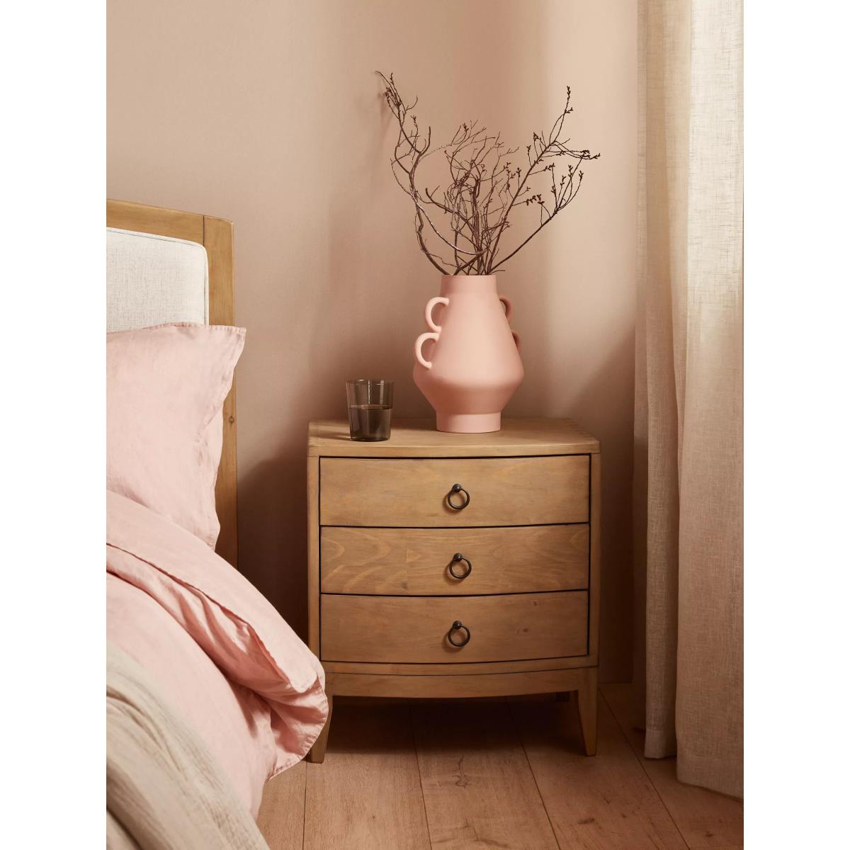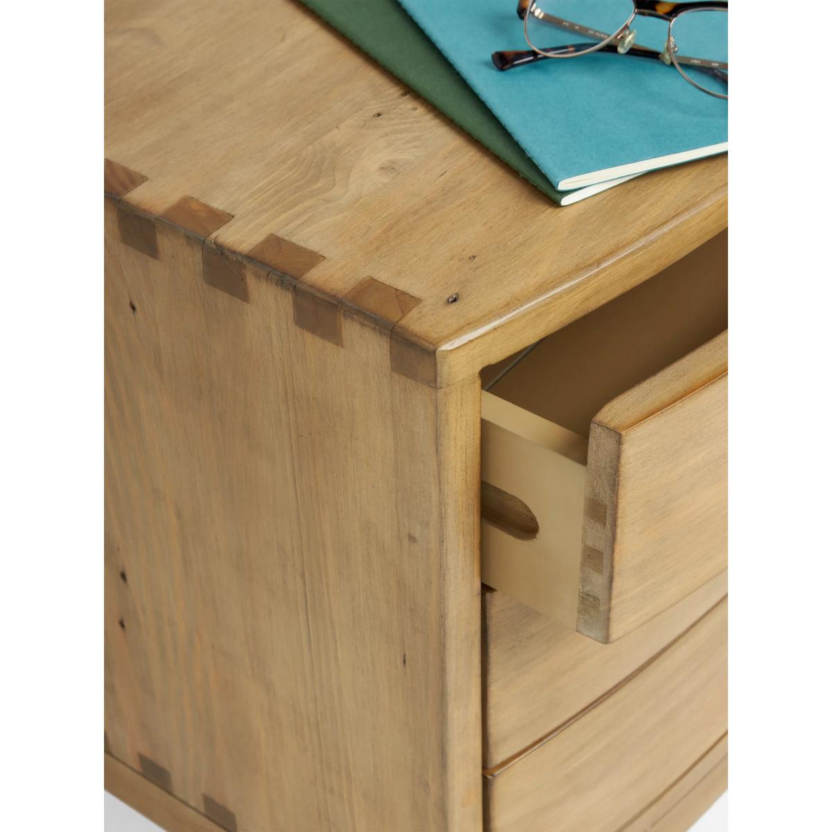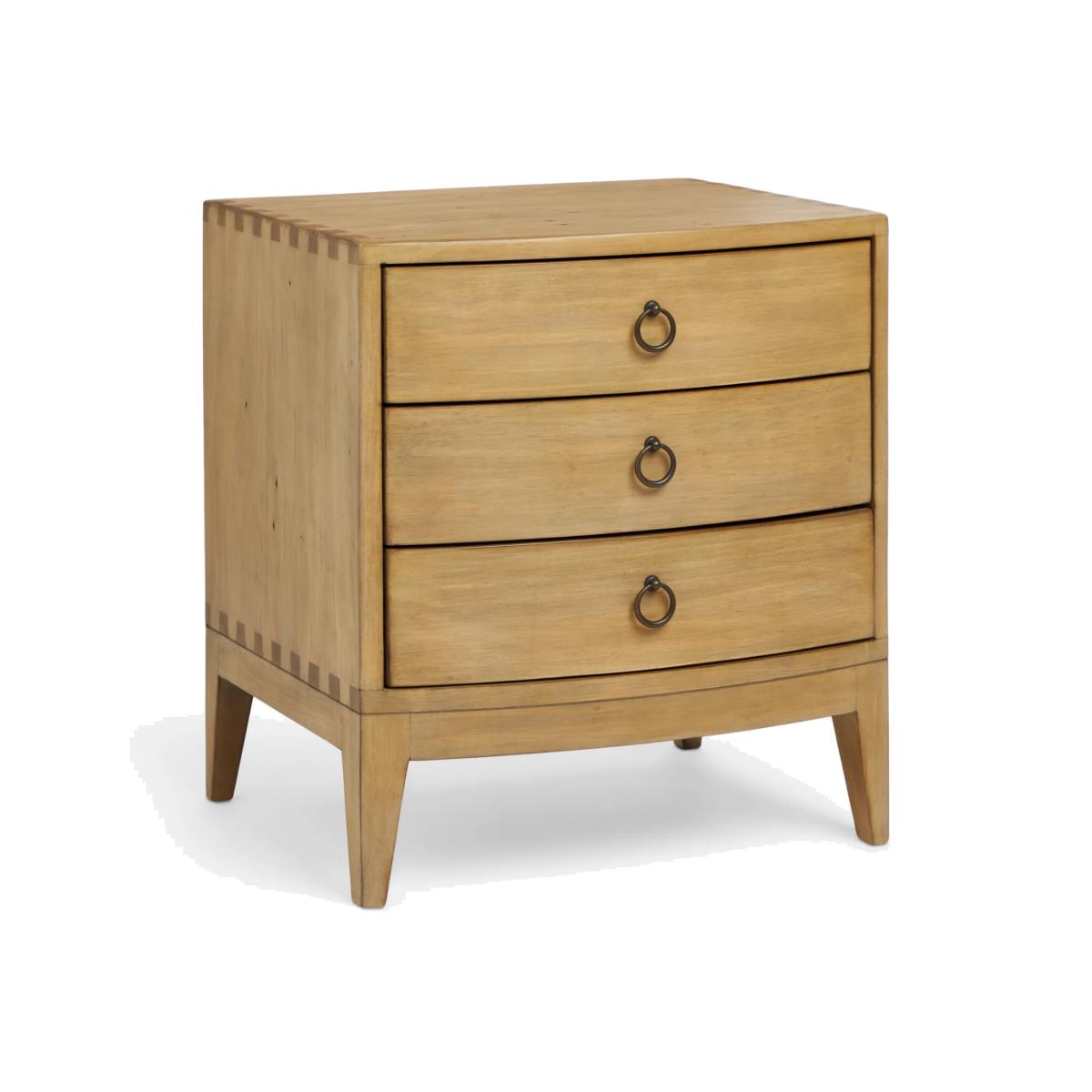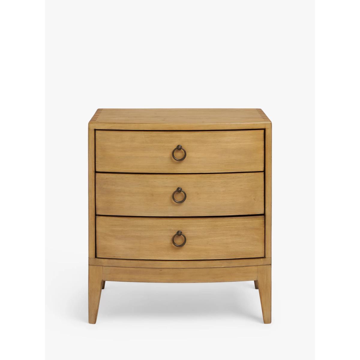 A distinctive design, our Bowed three drawer bedside table. Our Bowed range is solid reclaimed wooden furniture designed and produced from sustainably sourced recycled pine. An understated, yet sophisticated design. The sustainably sourced recycled wood is certified by The Forest Stewardship Council under license code FSC-C113407 and originates from discarded shipping pallets, packaging crates and old barns. The furniture is constructed following traditional English joinery methods and the beauty of recycled wood is the genuine natural imperfections that make each piece of furniture subtly one of a kind. We'd like to highlight to customers that as the items are made using reclaimed timber, features such as nail holes and block marks for example, will be visible. Selling Points: Reclaimed furniture made from FSC sustainably sourced recycled wood The recycled wood is seasoned to a nominal moisture content prior to milling Natural imperfections of the recycled wood create one of a kind furniture pieces Water-based finishing materials are used in the painting process English joinery methods are incorporated to create authenticity of each furniture piece Want to see it first? You may want to see and get a feel for the furniture in one of our shops before ordering. We'll be able to tell you where the range you'd like to view is on display.