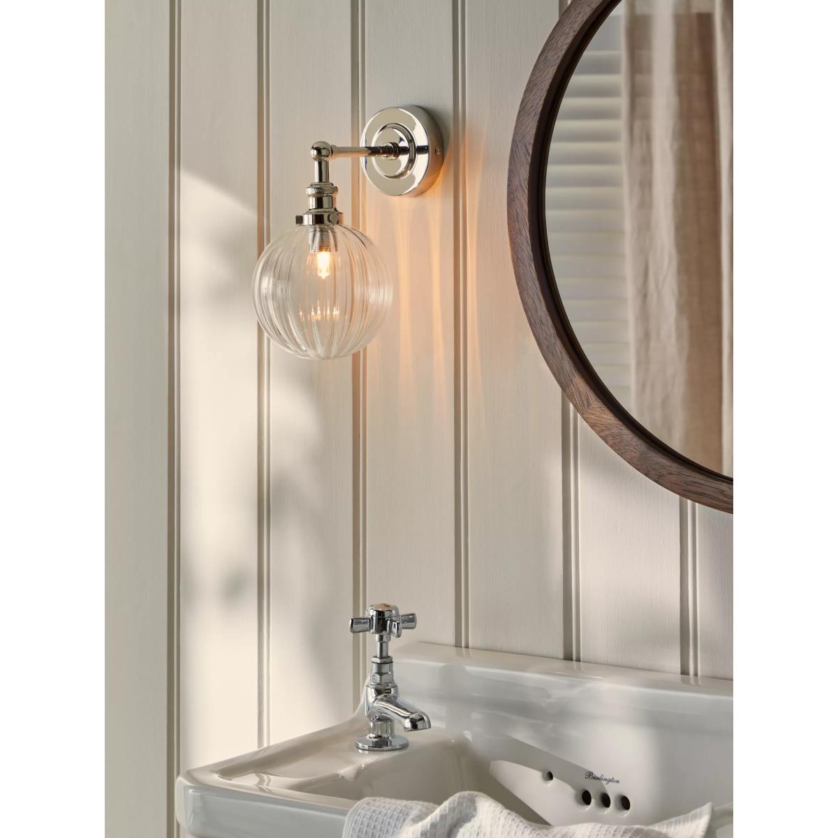 Combining industrial and timeless styling, the Brasserie wall light showcases a matte antique finish with a ribbed glass shade. This wall light offers a classy finish to your interior and is suitable for bathroom use.