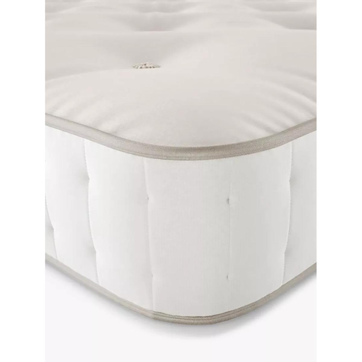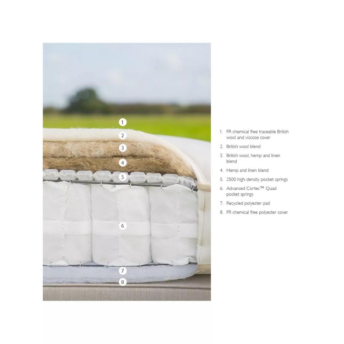 The Linen 3250 combines 100% natural fillings with innovative pocket spring technology for a super comfortable sleep. This zip link model can be used as one large mattress or as two independent mattresses, depending on your needs. Our British Natural Collection is handmade by experts in Yorkshire, with natural fillings chosen for their wonderful comfort, temperature-regulating and moisture-wicking properties. The innovative, high-density pocket springs reduce pressure points and give excellent targeted support. Plus, the combination of eco-friendly and natural fillings, alongside a completely glue-free design means these mattresses are fully recyclable at end of life for a much more sustainable sleep space. Handcrafted by Harrison Spinks. Natural fillings Manufactured in Yorkshire, this mattress is upholstered with layers of locally-sourced natural fillings to wick away moisture, keeping your bed fresh and hygienic, without compromising on comfort. Cortec™ Quad pocket spring system This glue-free support system has been designed, developed and manufactured in-house, with a design that unites comfort and sustainability. It offers a two-stage level of support thanks to a spring-in-spring design, delivering even greater lumbar support and pressure relief. The heavier parts of your body will be perfectly supported to help maintain an aligned spine and to prevent unwanted aches and pains. Plus, as the springs work individually, air can flow better through the mattress to keep the temperature controlled. Eco-friendly design Marking a huge and sustainable step forward in mattress manufacturing, the patented Cortec™ Quad springs are sealed with heat rather than glue. Not only does this mean the springs can work individually for maximum efficiency, it also means each spring can be disassembled and reinvented in the future. So this mattress is 100% recyclable at the end of its life, rather than ending up in landfill sites across the country. We guarantee to recycle your mattress responsibly when you’re ready to buy your next one, after seven years. and we’ll help you to choose a new mattress and recycle this one. Make the most of your mattress After unwrapping your new mattress, leave it in a well-ventilated room for a few hours. Any natural scent from the fillings will dissipate after a few days. We recommend using a cotton mattress protector and airing your mattress regularly. If you’re placing this mattress on a slatted base, ensure the gaps are no more than 7.5cm apart. Try before you buy This is an important purchase and it’s worthwhile to try your choice of mattress in store to make sure it's right for you. Our store Partners will be able to tell you more about its benefits, and recommend options based on your needs.