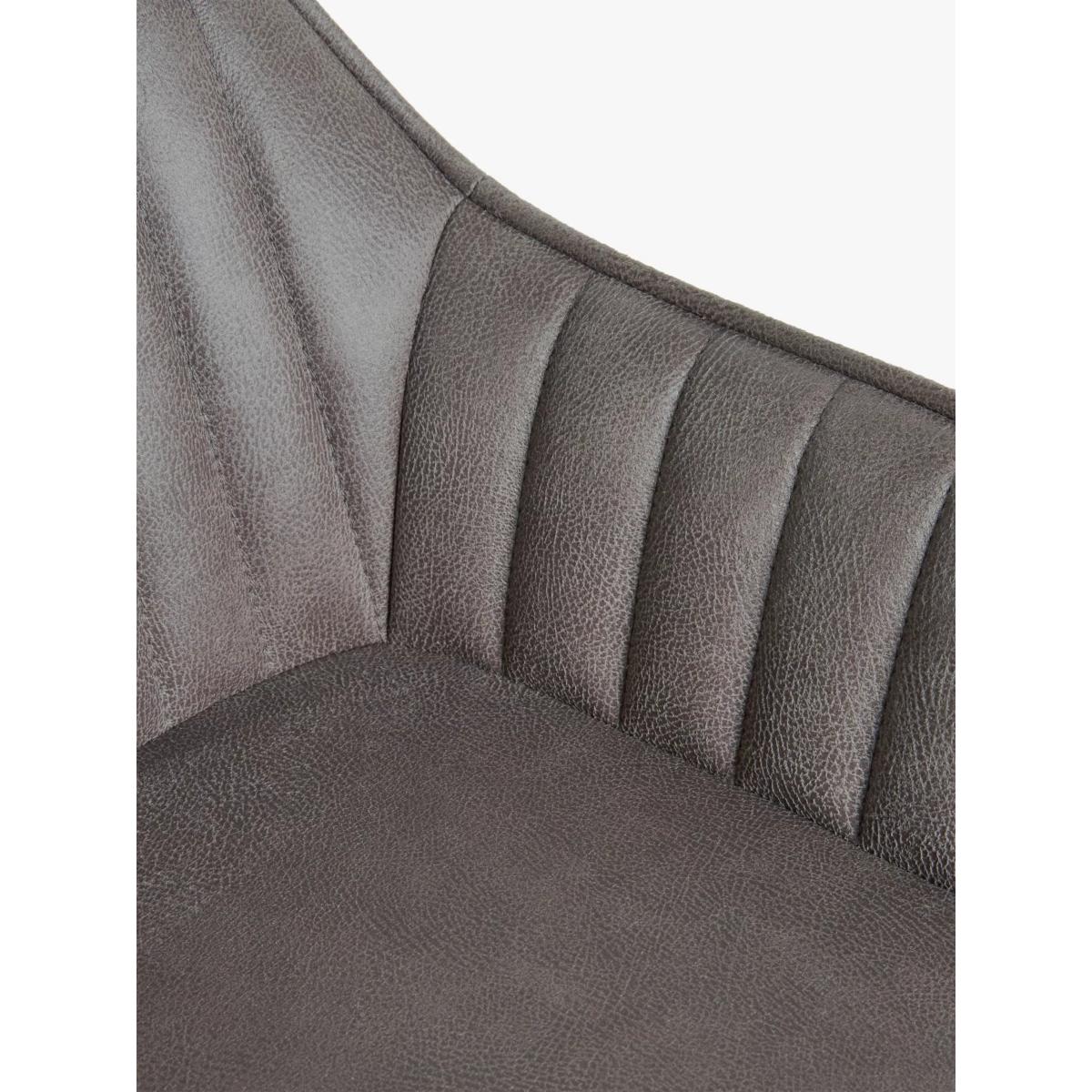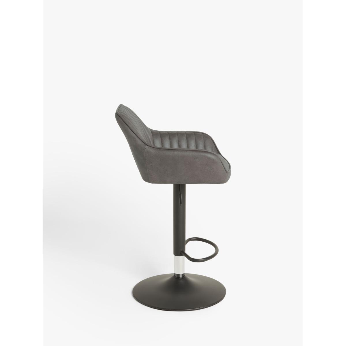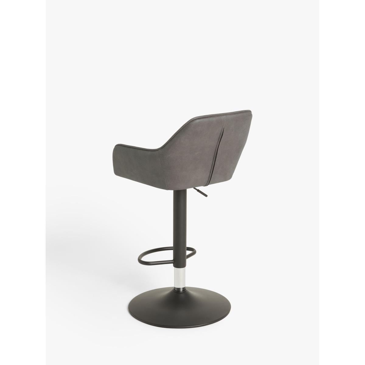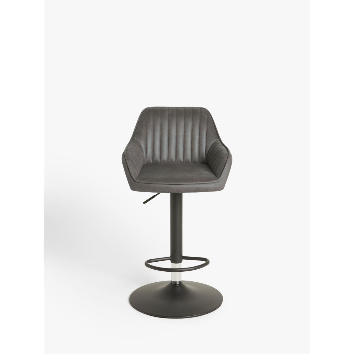 Our Brooks height-adjustable bar chairs have a tactile seat upholstered in resilient faux leather and a minimalist yet stable metal leg frame with a leg rest. Well-cushioned and quilted in a neatly stitched design, this pair of bar chairs are ideal for casual dining with the backrest, integrated low armrests and foam-filled seat providing comfortable support. The fabric has a soft-touch feel, a blend of 65% polyester and 35% leather which makes it resistant to cracking. The surface is coated to make it water-repellent. If other liquids are spilt, you have a few minutes to quickly wipe the fabric clean to keep it in good condition. Want to see it first? You may want to see and get a feel for the furniture in one of our shops before ordering. We'll be able to tell you where the range you'd like to view is on display.