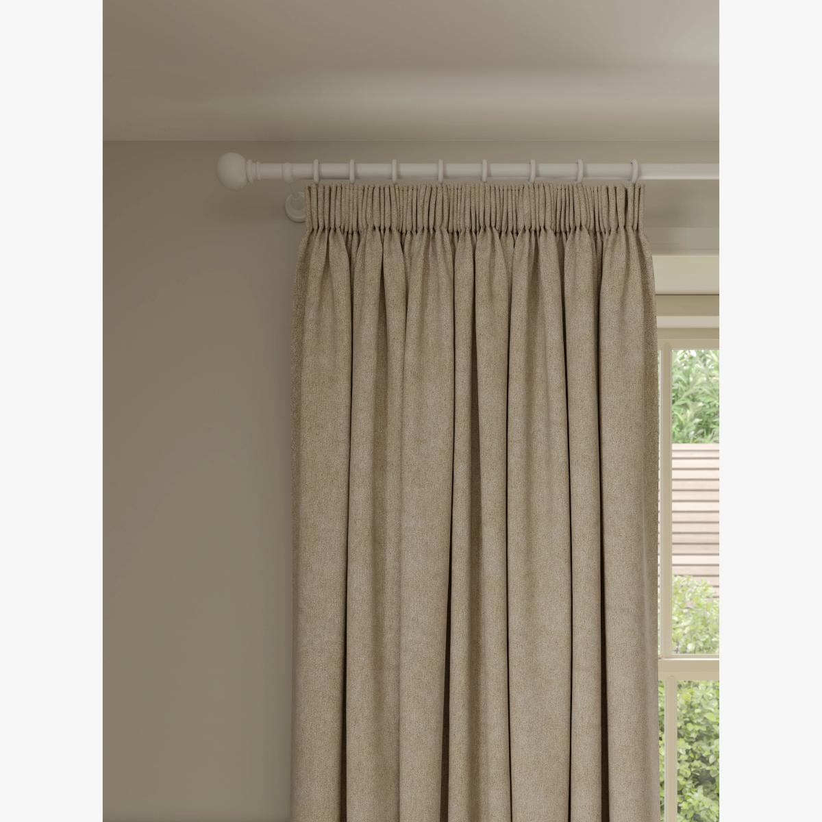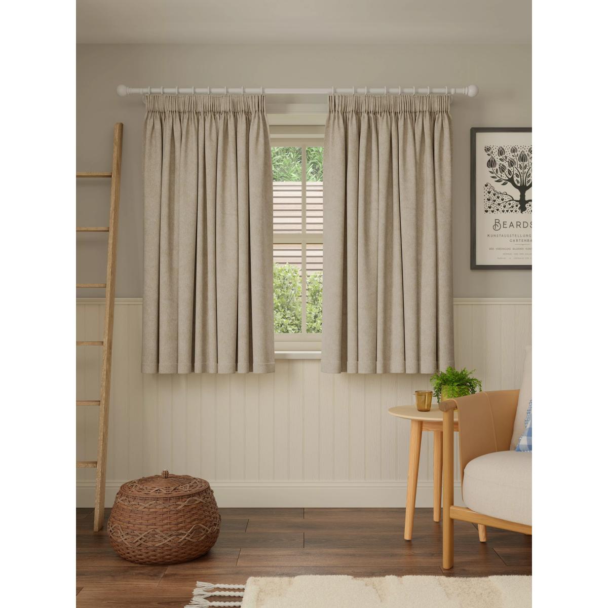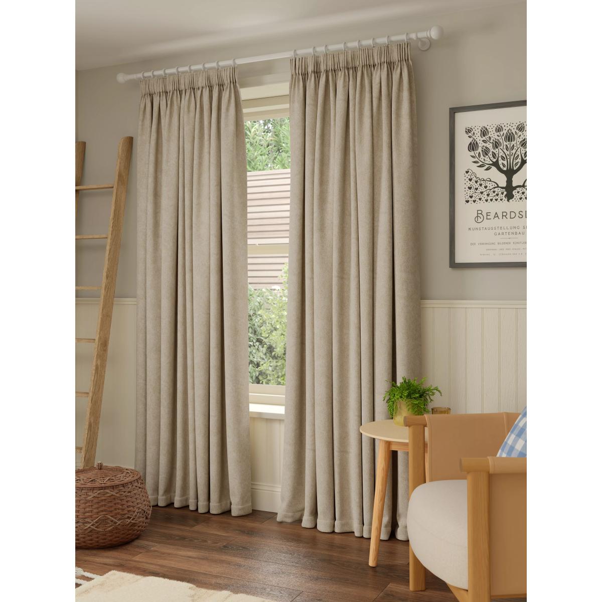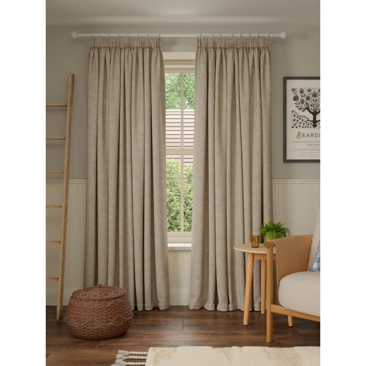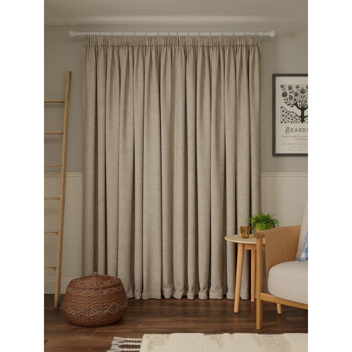 With a brushed wool like finish and a blackout lining, these pencil pleat curtains have a beautiful drape and a smart finish. Warm in winter, cool in summer As the blackout lining on these curtains blocks out sunlight they help keep your room cool as well as dark. This lining also adds an extra layer of insulation to the curtains, giving them the added benefit of being thermal. They protect against both heat loss and heat gain, regulating the temperature of your room so you’re kept warm in winter and cool in summer. Choosing the right size These curtains can be hung with a pole or track using curtain hooks (not included). There are three hook positions on the heading, allowing you to choose how your curtains sit against the track or pole. For example, if you're using a track you may want to use the middle or lower row of hooks to cover the track, whereas if you're using a pole you may want to use the top row of hooks so the curtains hang below the rings. The specified drop is taken from the top row of hook pockets to the bottom edge of the curtain. The width stated indicates the size of one curtain panel when laid completely flat. This pack contains two panels, and the track/pole length we've recommended allows for the two panels to be gathered when the curtains are drawn. For a fuller look, increase the curtain width. One pair of 167cm width curtains will fit a curtain track/pole size of 133-167cm One pair of 228cm width curtains will fit a curtain track/pole size of 182-228cm Worth knowing... We package our curtains in recycled materials to keep them protected whilst they make their way to you. When they arrive they may be creased. We recommend you follow the ironing instructions on the back of the packaging prior to hanging your curtains. Be aware that each style of curtain has different ironing instructions, including heat limitations according to the fabric, so do make sure you follow the guidance provided to get the best results. Do you need a curtain pole and accessories? Shop them here. Special buy: These products are special because we negotiate exclusive discounts with our suppliers and pass the savings on to you. They're limited, either in quantity or for a period of time, but they'll always give you excellent quality at an exceptional price. Just for our Sale, we're offering these curtains at a very special price. Available while stocks last.