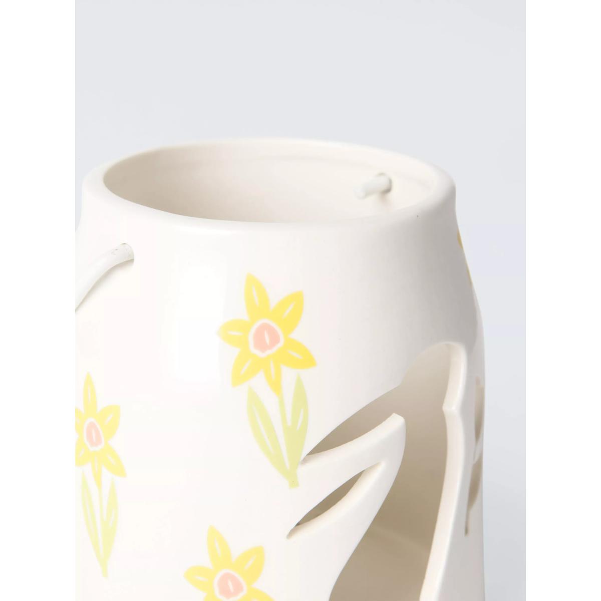 This ceramic lantern has a pretty, painted design of spring flowers and bunny and flower cut outs for the light inside to shine through. Tealight not included.