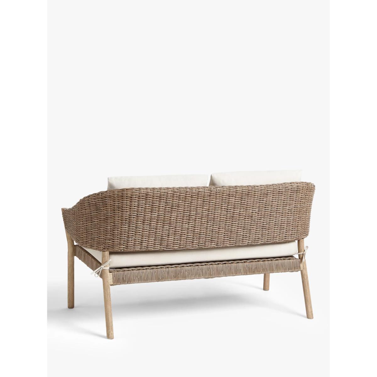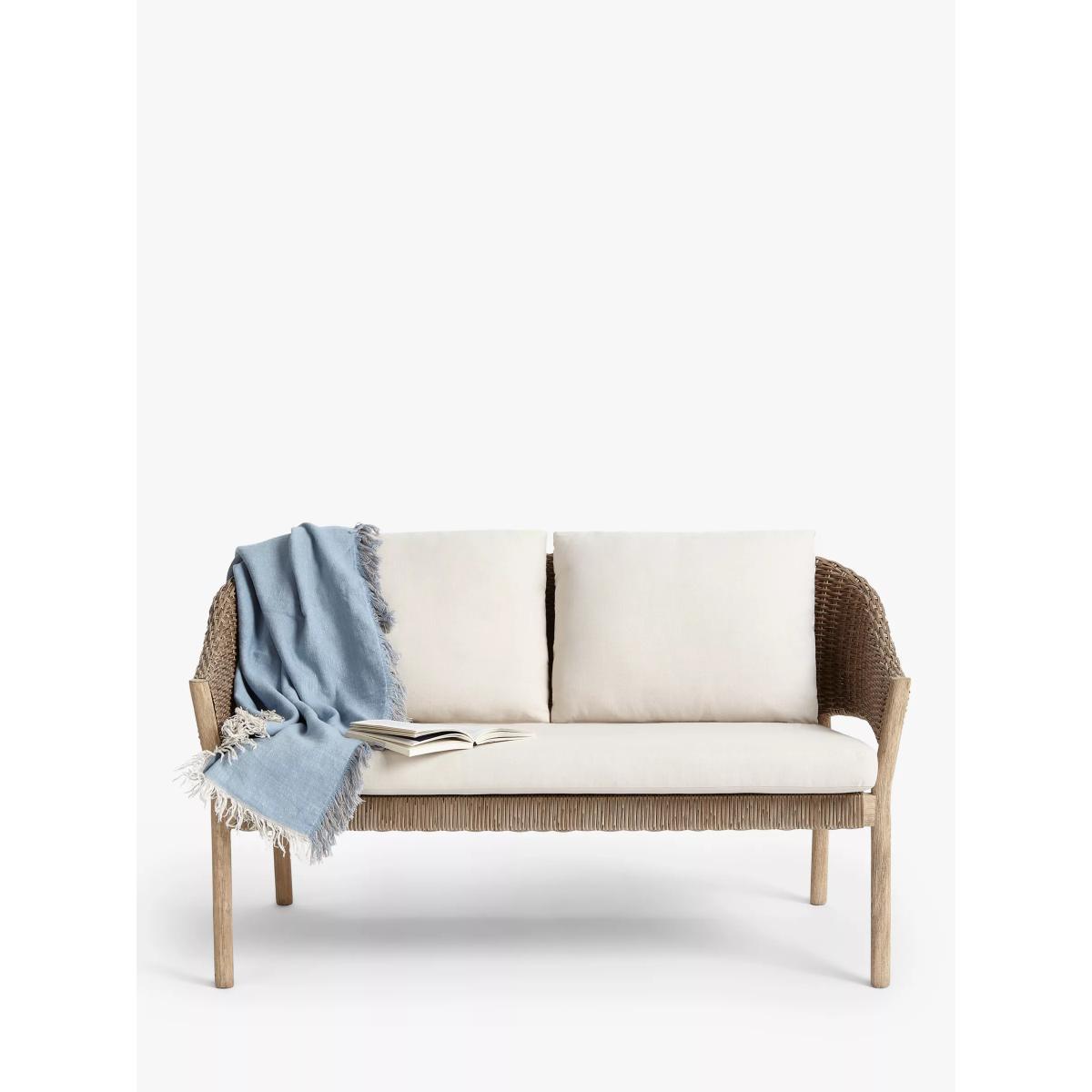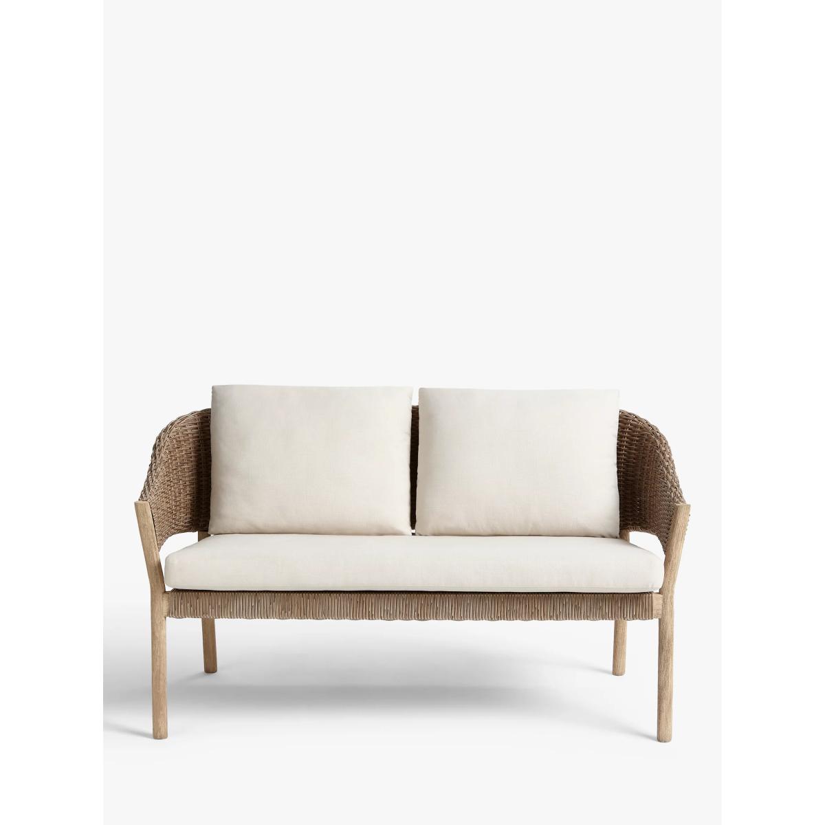 Suitable for the garden or conservatory, this two-seater sofa has wooden frames with a limed finish to highlight the beauty of the grain. The seat and curved back support are made of synthetic wicker with an attractive 6mm-thick, half-round weave design. Easy to maintain, the wicker is waterproof and UV-protected to prevent fading so the sofa can be left outside throughout the seasons. Removable shower-resistant seat and backrest cushions are included, providing sumptuous comfort. The frames are made of responsibly sourced FSC-certified acacia wood, matching furniture from our Burford range. Key features: 2-seater sofa FSC-certified acacia wood and synthetic wicker Sumptuous shower-resistant cushions included Suitable for indoor and outdoor use Suits our Burford range of outdoor furniture Choose the perfect outdoor furniture We have a selection of wooden furniture for you to choose from which will suit the home or garden. Below are a few options to consider when choosing your perfect outdoor furniture. Teak (Best)A premium and popular wood with an attractive appearance which ages beautifully. Strong, durable and resistant to rot and decay, this furniture requires little maintenanceEucalyptus (Better)Distinctive scent and appearance which darkens as it ages. Provides similar natural benefits to teak including moisture resistance, hardness and durability. It's plentiful in supply which makes the furniture an inexpensive choice Acacia (Good)Naturally durable, this wood is incredibly hard and is unlikely to suffer damage during everyday use. It provides similar natural benefits to teak, yet unlike many other hardwoods, acacia is also relatively fast growing which minimises the environmental impact. The majority of our furniture ranges have been hand woven using a synthetic wicker; the thinner the weave, the longer it takes for more skilled workers to complete. All weave types are durable so they'll last throughout the seasons All woven outdoor furniture is UV protected so it will not fade in direct sunlight All woven outdoor furniture is easy to maintain; simple wipe clean with warm water FlatA weave of various widths which offers incredible value for money Half roundMore detailed with a 3D effect, the half round is a round weave in half which displays a wicker appearance on the top and hollowed underside Double half roundA double strand of half round, this is a wider width of weave which achieves a premium appearanceRound weaveA very tight weave which is available in various widths: 2mm and 5mm (4 Seasons), 3mm (Dante) RopeA selection of our ranges have been made using rope originally made for the fishing industry such as our Ariel and Leia furniture and LG Outdoor Hanoi. The yarn is made up of 10,000 (approx) woven strands with a double core for extreme strength, does not attract mould even if wet for a long time and is UV resistant.