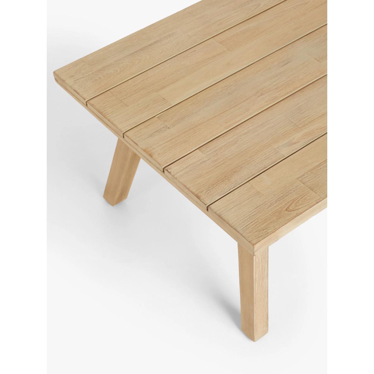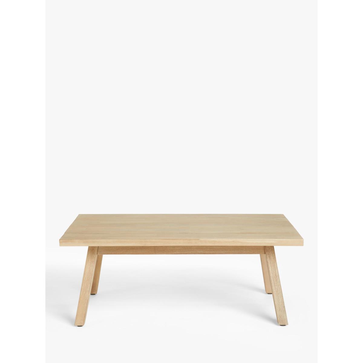 The limed finish on our Burford garden furniture highlights the beauty of the wood grain. Made from FSC-certified acacia wood, this rectangular wooden coffee table from our Burford range suits the garden or conservatory. All our outdoor wooden furniture ranges are made from sustainably sourced, naturally weather-resistant tropical hardwoods, such as acacia. Features: FSC-certified acacia wood Rectangular coffee table Suitable for indoor and outdoor use Part of our Burford range of outdoor furniture By choosing this product you are supporting responsible management of the world's forests. The Forest Stewardship Council® (FSC®) is a global, not-for-profit organisation that helps take care of forests and the people and wildlife that call them home. To learn more, visit fsc.org. Want to see it first? You may want to see and get a feel for the furniture in one of our shops before ordering. We'll be able to tell you where the range you'd like to view is on display. Choose the perfect outdoor furniture We have a selection of wooden furniture for you to choose from which will suit the home or garden. Below are a few options to consider when choosing your perfect outdoor furniture. Teak A premium and popular wood with an attractive appearance which ages beautifully. Strong, durable and resistant to rot and decay, this furniture requires little maintenance Eucalyptus Distinctive scent and appearance which darkens as it ages. Provides similar natural benefits to teak including moisture resistance, hardness and durability. It's plentiful in supply which makes the furniture an inexpensive choice. Acacia Naturally durable, this wood is incredibly hard and is unlikely to suffer damage during everyday use. It provides similar natural benefits to teak, yet unlike many other hardwoods, acacia is also relatively fast growing which minimises the environmental impact.