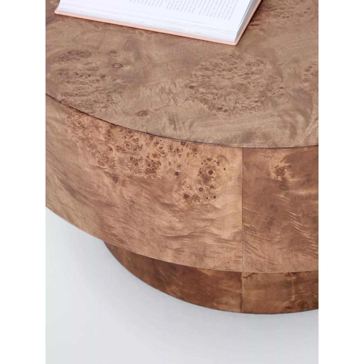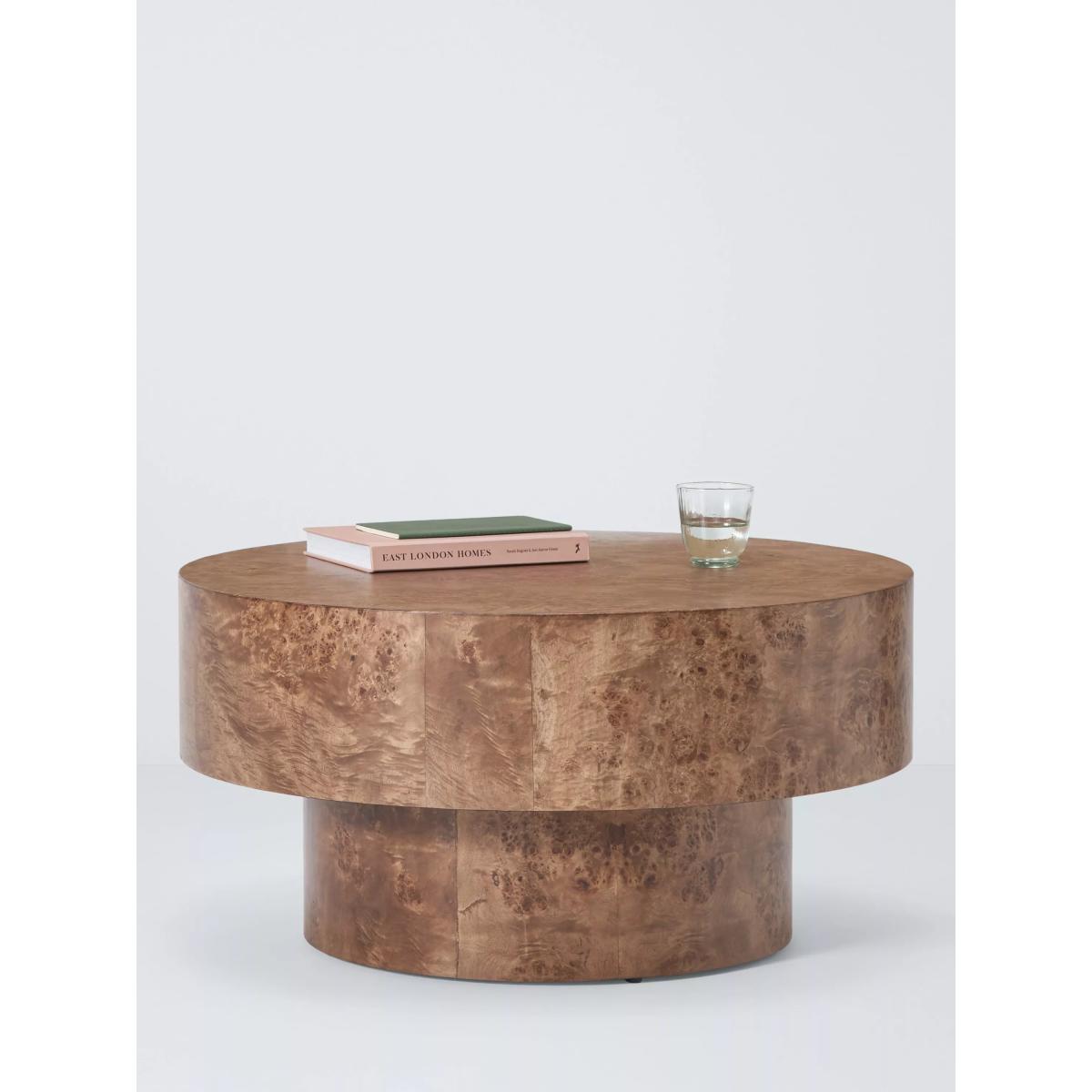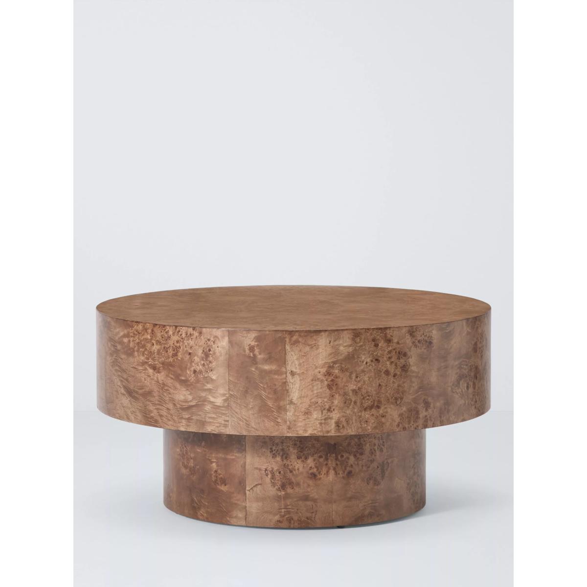 I love the John Lewis burl round coffee table for its warm, natural appeal and sculptural form-it's a real statement piece that can easily anchor a living space. Its rich walnut finish works particularly well in both modern and traditional interiors, adding a touch of sophistication without feeling overly formal. For styling, try pairing it with layered textiles like textured rugs or cushions to soften the look, or decorate with simple accessories like candles or a tray for practicality. This table is versatile enough to work in open-plan lounges or cosy niches, making it a smart choice for creating an inviting yet stylish focal point.