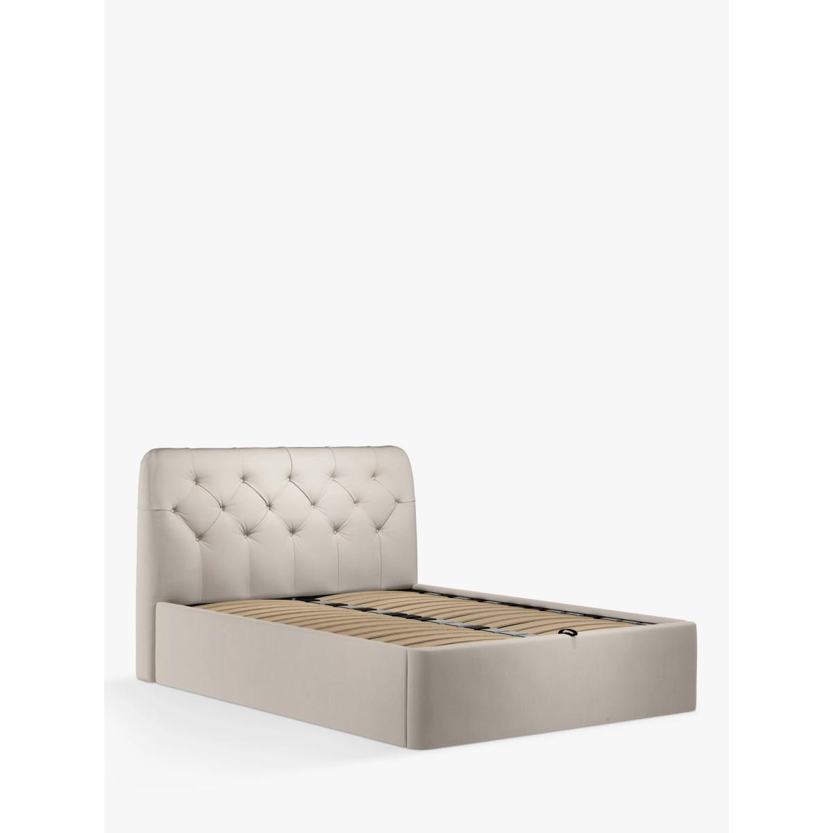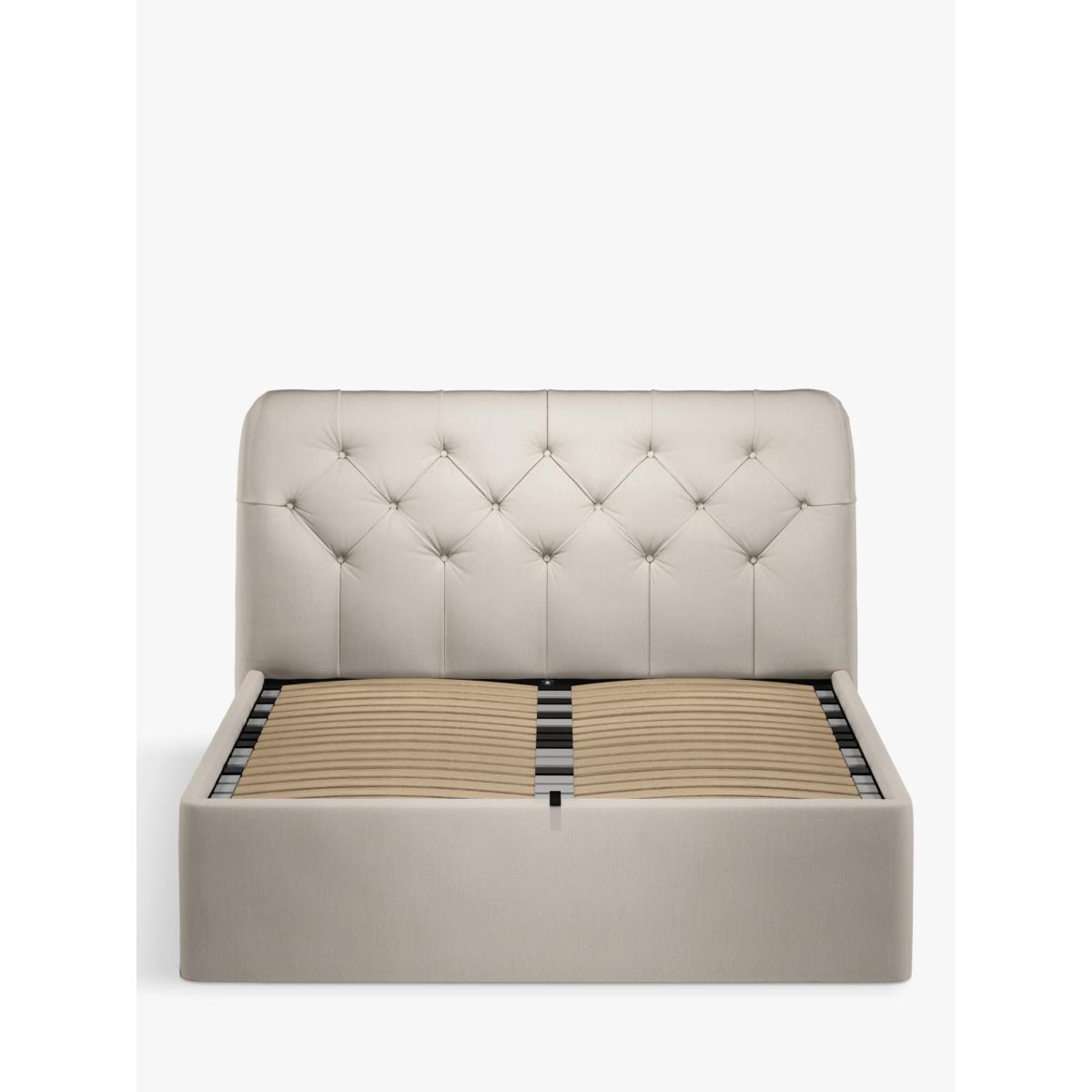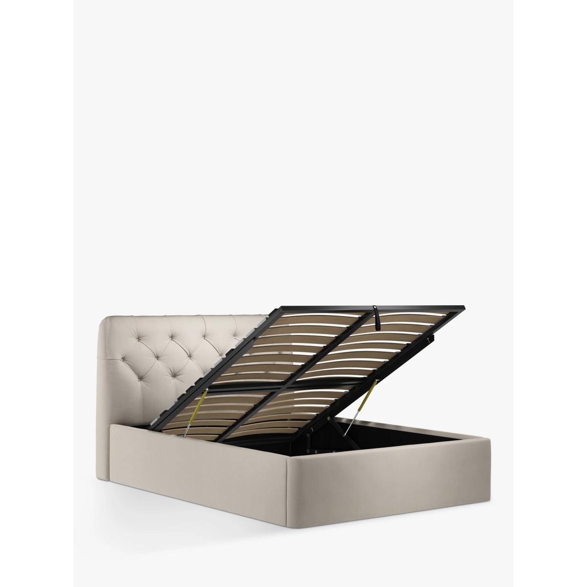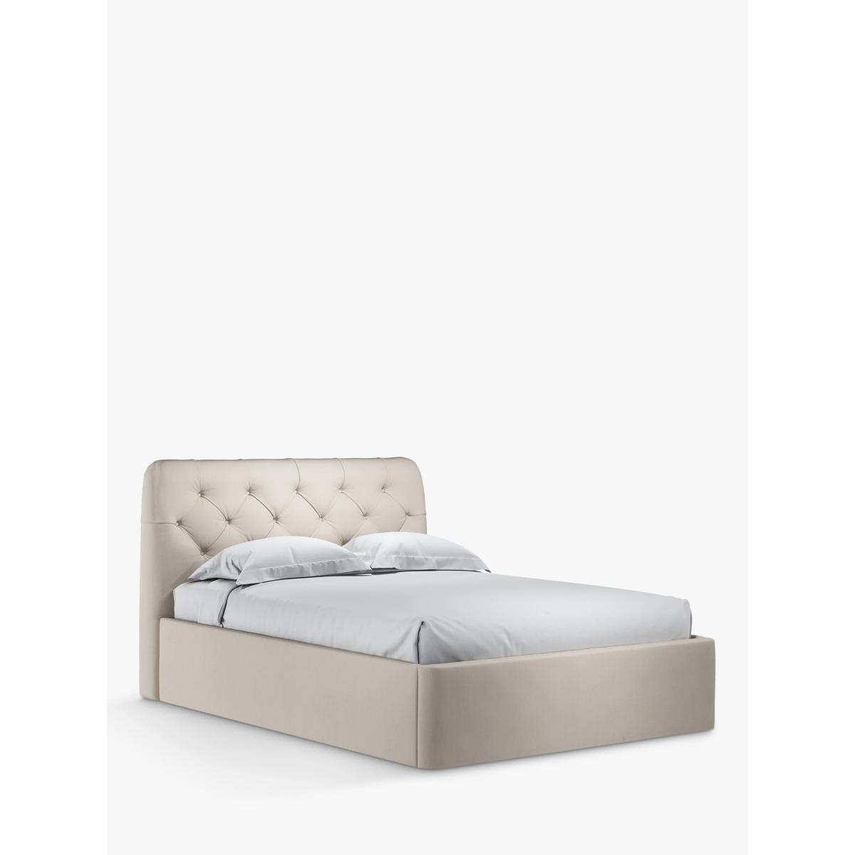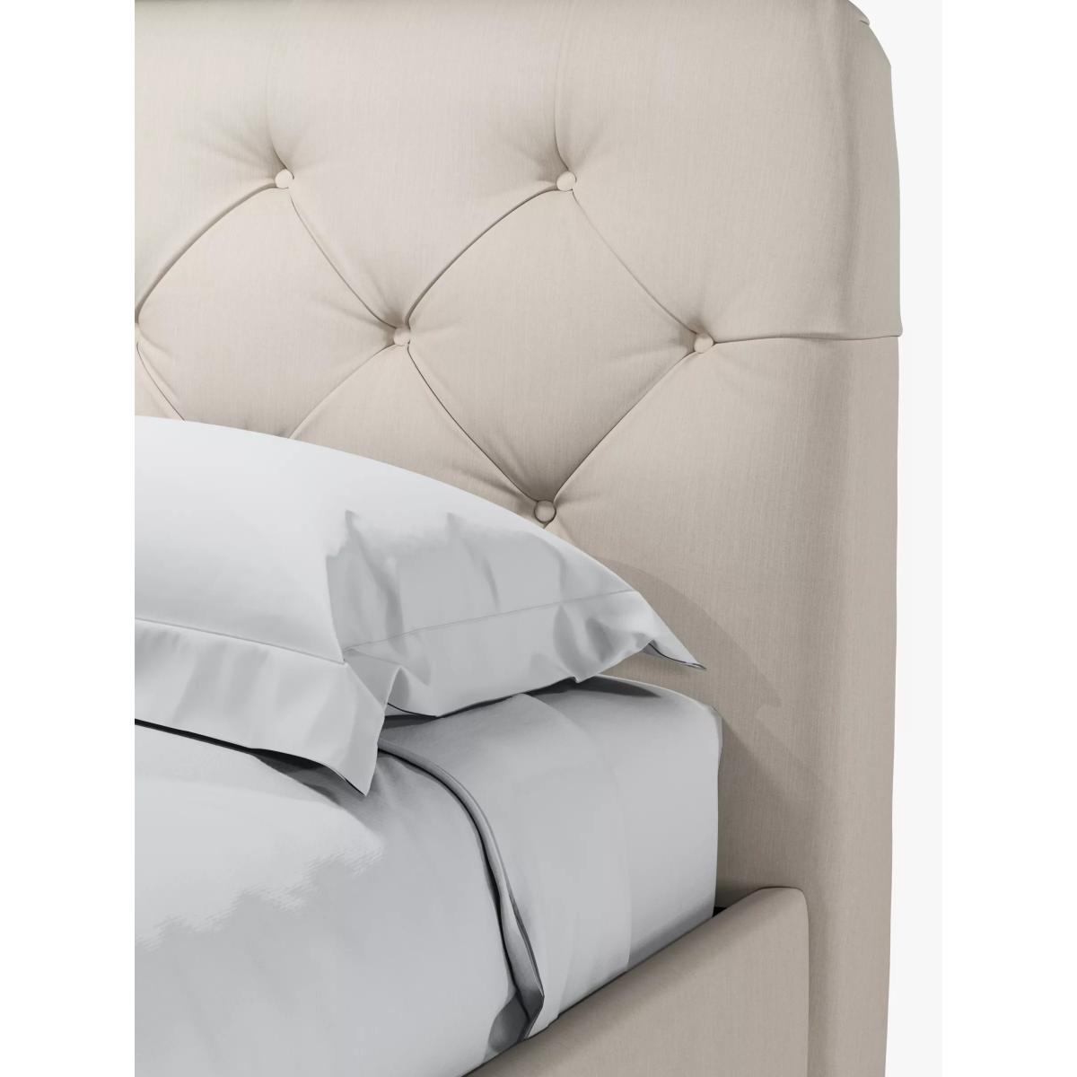 Our Button Back ottoman bed frame is designed to free-up your floor space and bring a clever storage option into your bedroom. Its timeless design makes it a versatile choice and the subtly curved padded headboard gives a modern edge. We've added button detailing to the headboard and supported the frame with low, turned legs made from high quality wood. With the help of hydraulic arms and a handle, it's easy to lift up the mattress to reveal a functional storage space in the base. Sprung slats provide a supportive foundation for your mattress. Assembly service Our assembly service is included in the selling price for our Made to Order beds. At the same time as delivery, we'll build your new bed and place it in your room of choice. We'll take away all of the packaging too, for recycling. Built with Smart SlatsThis bed frame is designed with wider slats at the shoulders, lumbar and feet. They provide maximum support for you and your mattress so that you experience perfect spinal alignment while you sleep. The standard slat caps are black so we have added grey slat caps to ensure that you know where to place the wider slats. Choose from one of our fabrics: Our Band A fabric, Cotton Effect has a laid-back and fine-textured look that looks like cotton, but it's made from durable polyester fibres Our Band A fabric, Brushed Tweed is made with a brushed herringbone weave that has a cosy wool look and soft 'peach skin' feel. It's really hard-wearing and a brilliant all-rounder Our Band A fabric, Soft Weave has a casual cotton look with a brushed finish that's soft-to-touch and a subtle texture that's created by slight variations in the tones of the woven fibres Our Band B fabric, Deep Velvet will bring warmth and luxury to your bedroom. It's a short pile velvet with a soft, plush feel Our Band B fabric, Soft Touch Chenille is made from a blend of fibres that give it a super-soft feel and added durability Our Band B fabric, Relaxed Linen gives you the fine texture of cotton, the durability of synthetic fibres and the laid-back look of linen Want to see it first? You may want to see and get a feel for the furniture before ordering. Pop into one of our shops to see the full range of colours and fabrics on offer. We'll be able to tell you where the range you'd like to view is on display.